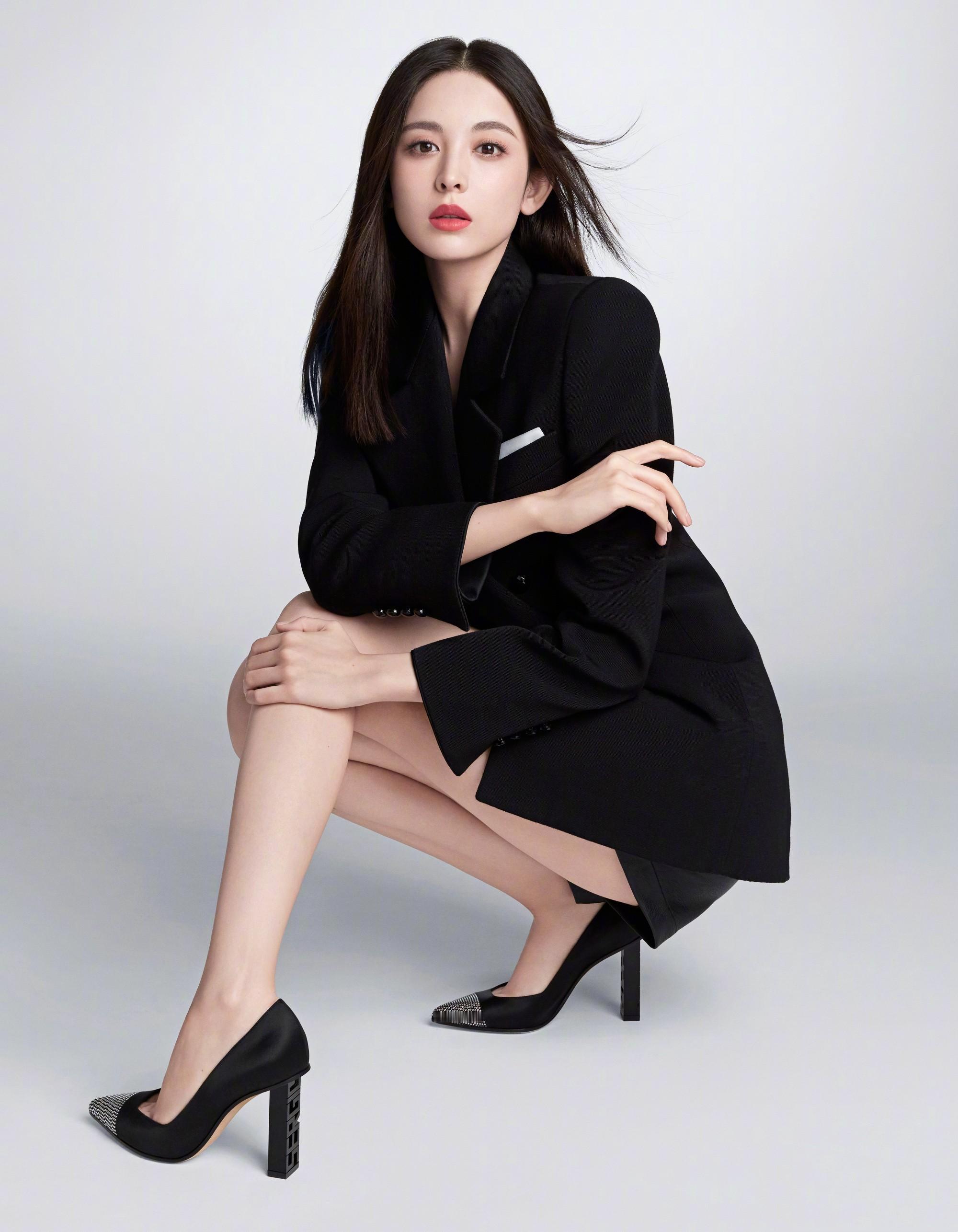 古力娜扎,黑与白色彩穿搭,美腿吸睛。娜扎