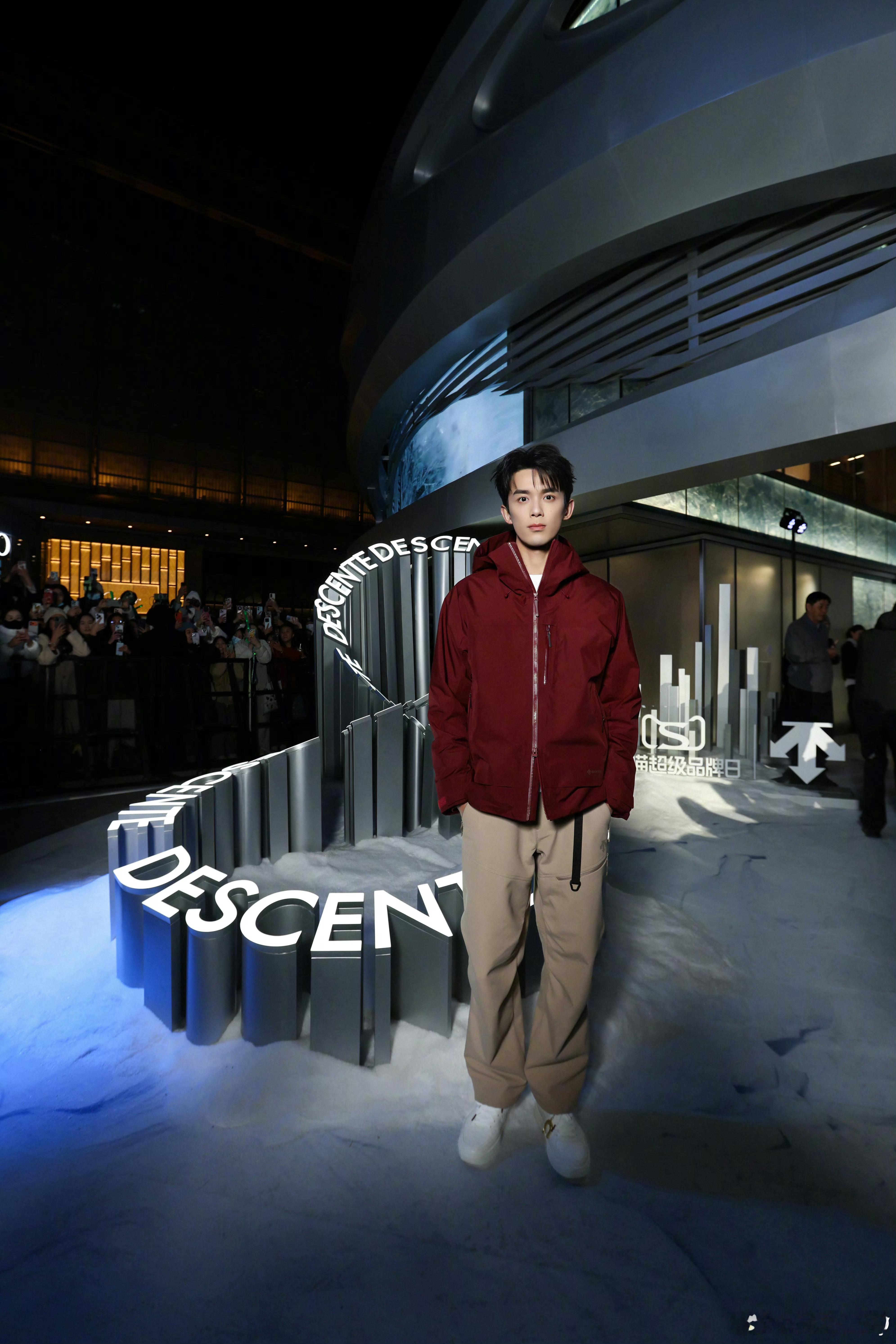风格大赏都市户外风迪桑特品牌代言人吴磊身着酒红色冲锋衣惊艳亮相北京“未来之城”品
