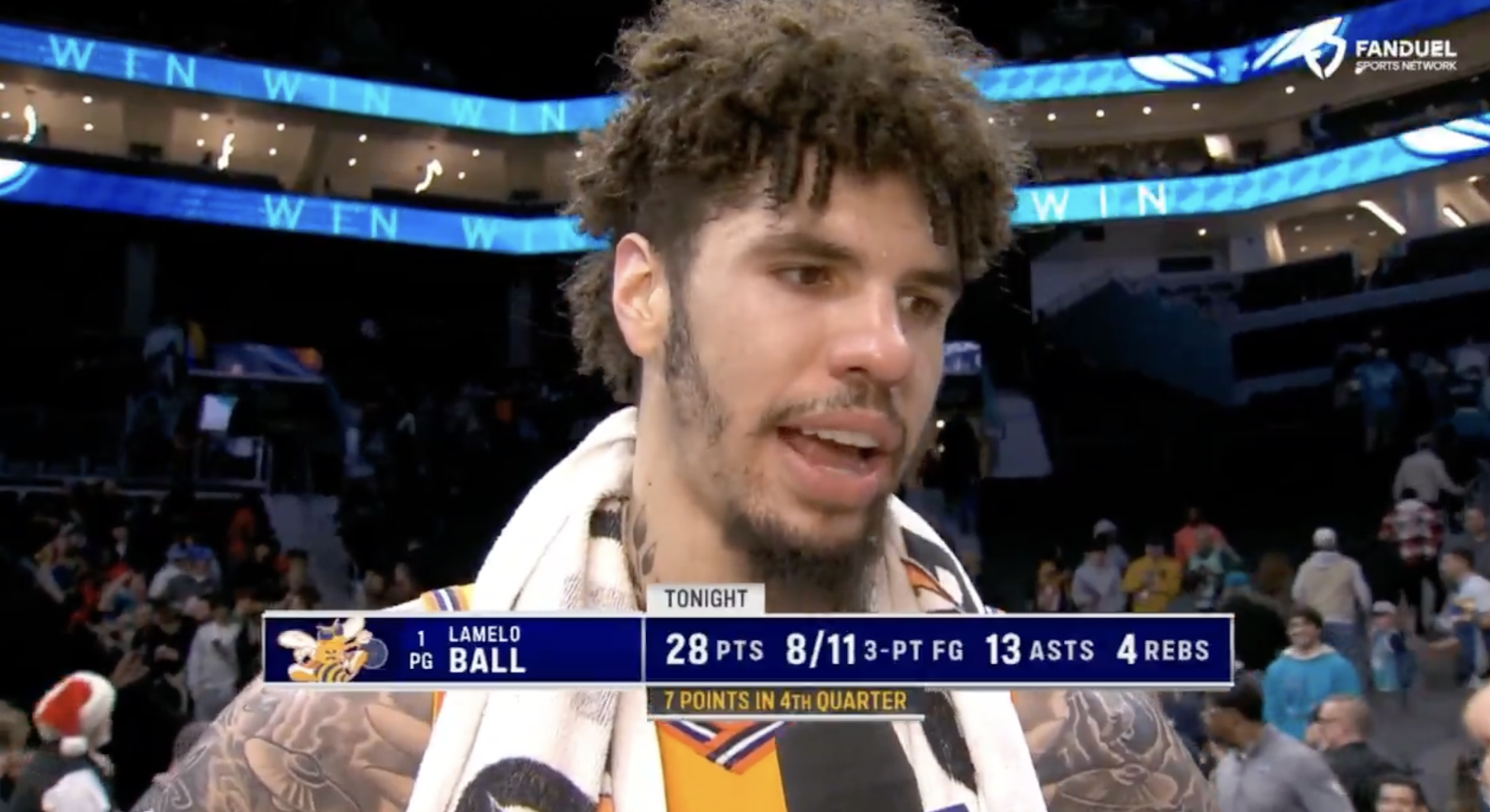 赛后黄蜂球员拉梅洛-鲍尔接受了记者采访,鲍尔表示:“这场球打得太爽了,能重新回到赛场就很开心——我已经阔别赛场好一阵子了。全队上下都完全投入了比赛,队里的伤员也陆续回归,每个人都在场上全力以赴……所以这场球打得真的很尽兴。”