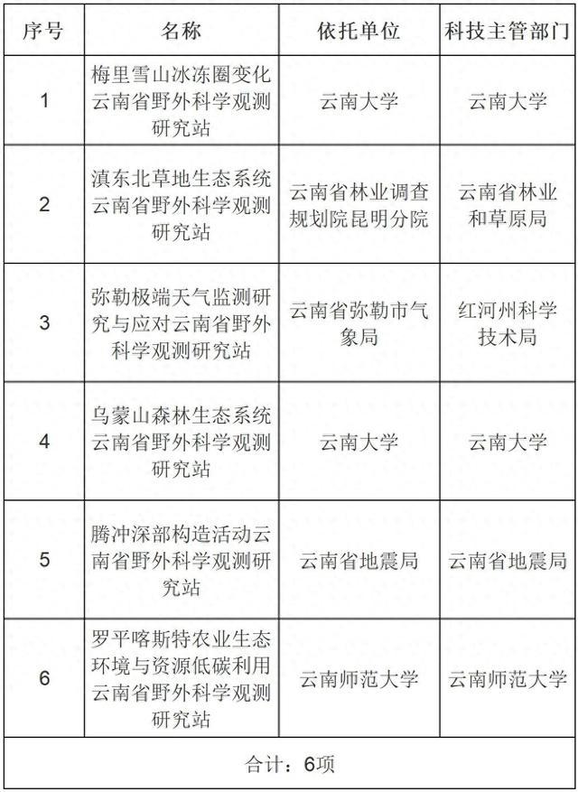 按照相关文件规定,云南省科学技术厅组织开展了2025年省野外科学观测研究站申报、受理、专家评审等工作。经省科技厅厅务会审议通过,拟批准“梅里雪山冰冻圈变化云南省野外科学观测研究站”等6个省野外科学观测研究站建设。省科技厅现对2025年拟批准建设的云南省野外科学观测研究站名单予以公示,公示期截至2025年12月23日。