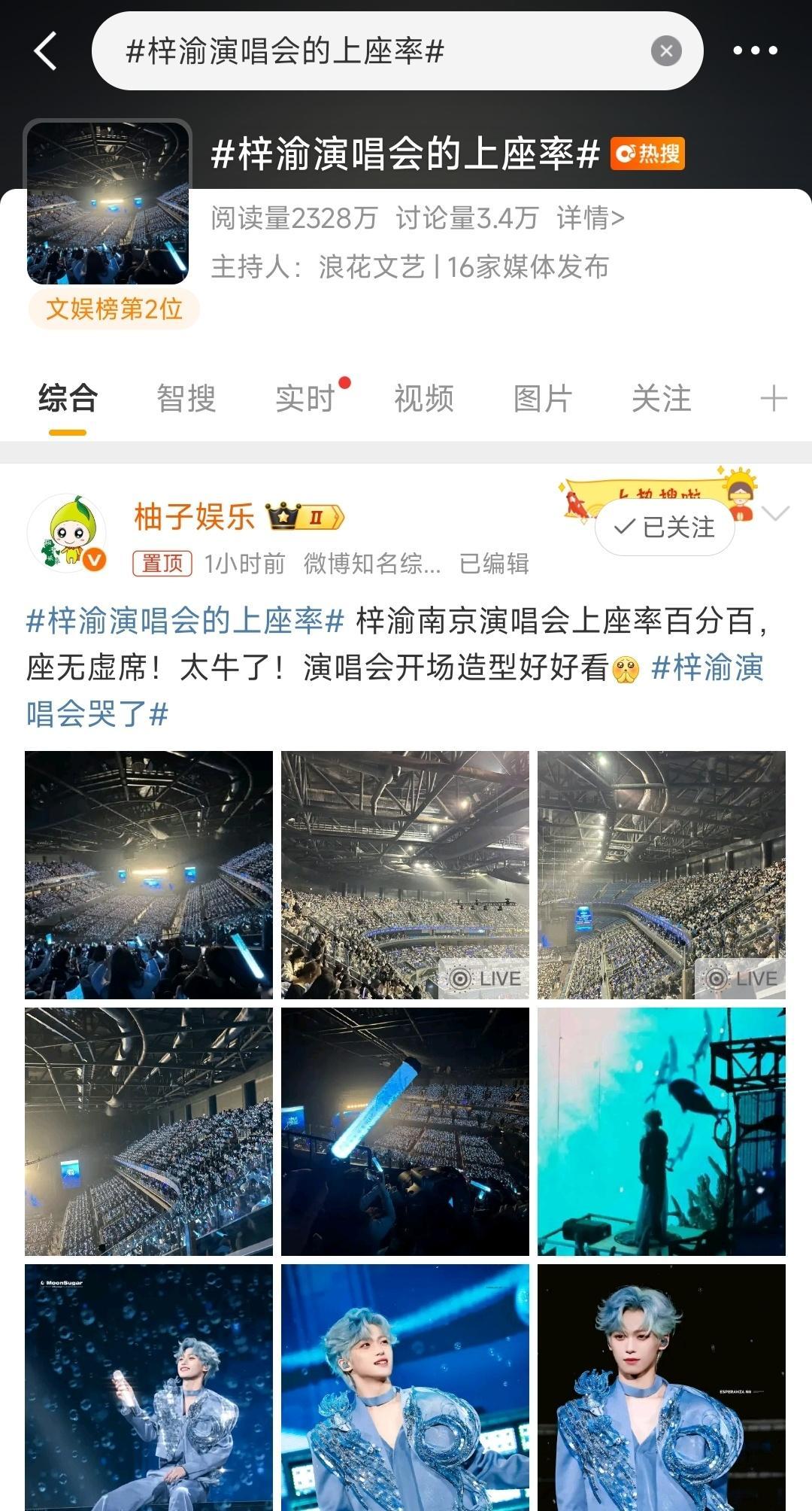 梓渝演唱会的上座率看来我真的是老了。热搜榜上第二的有一个叫梓瑜的演唱会,上座率百分百,听说座无虚席,特别的牛我仔细想了半天,都没想到有一个叫梓瑜的歌手。至于他成名曲或者是出圈作品,也是没想到。搜了半天才发现好像是在蛋改出道的一个偶像演员开演唱会,还有这么多粉丝去捧,上一次看到这么热闹的情况,还是说相声的张云雷吧