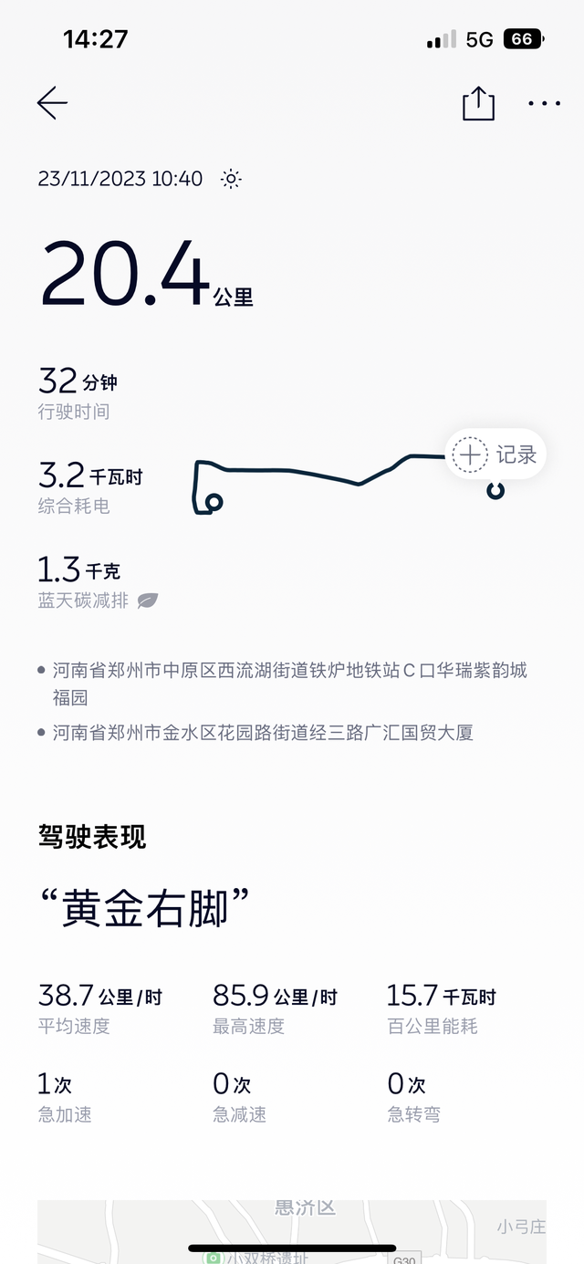 又到了总结最近能耗情况的时间了 目前车子已经跑了7909公里,续航情况如下。 车子是蔚来ES6 2023款75kWh,主要在郑州行驶。 在室外温度是15℃的情况下,可以跑410公里。 买车今天刚好65天,跑了7909公里。基本上每天干100多公里,早晚接送孩上学大概30公里,平时出差有时候会跑郑州周边地市,高速120,风大的情况23-24KWh电耗,正常22-23KWh,市区15-25温度情况下,正常电耗14-18kwh左右,10年驾龄,现在开车相对稳当,但是也有早上送孩有时候会速度快些。整体感受比较满意,前两天天冷的时候,电掉的有一些快,市区在18-20kwh。