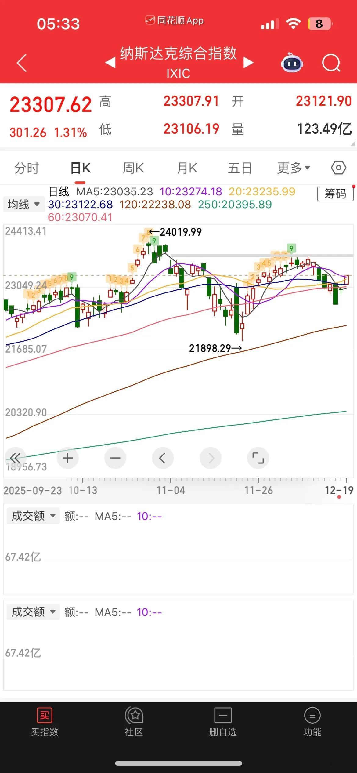 一觉醒来,外围全红,白银再创历史新高,中概股普涨,纳指金龙指数涨近1%,阿里涨近2%,百度大涨近3%,拼多多大涨超3%,阿特斯太阳大涨超3%,小鹏汽车大涨近7%,富时A50涨0.17%,恒生主连涨0.46%,这样看下周我们大A有望小幅高开,冲击3900点,走出4连阳,而港股恒科下周应该还能继续往上修复。昨晚美股三大指数全线翻红,道指涨0.38%,纳指涨1.31%,大型科技股普涨,费城半导体大涨2.5%,英伟达大涨近4%,甲骨文暴涨近7%,特斯拉跌0.45%,AMD大涨超6%,博通大涨超3%,台积电涨1.5%,美光科技大涨近7%,闪迪大涨超8%,西部数据大涨超3%,这样看下周我们存储芯片应该会有所表现,总不至于再冲高大跳水。昨天市场放量普反,微盘股连涨三天,沪指也走出了三连阳,成功站稳了20日均线,下周看有望突破3900点整数关,压力位在60日均线附近,估计得2万亿左右量才能拿下,而创业板呈现横盘整理态势,它主要取决于CPO表现,昨天两市放量700多亿,目前总成交维持在1.7万亿左右,情绪一般,板块上昨天大消费全线走强,零售、乳业涨幅居前,智能驾驶、商业航天、可核聚变延续强势,不过现在内部分歧大,资金呈现高低切,月底临近小心集中兑现,海南板块昨天午后走强,而存储芯片集体重挫,临近尾盘多只高位股集体跳水,整体来看这周涨的都是一些非主流品种,与基民无关,下周看科技股能否卷土重来,板块就看CPO、半导体机器人表现。点赞就是对金姐最大支持!