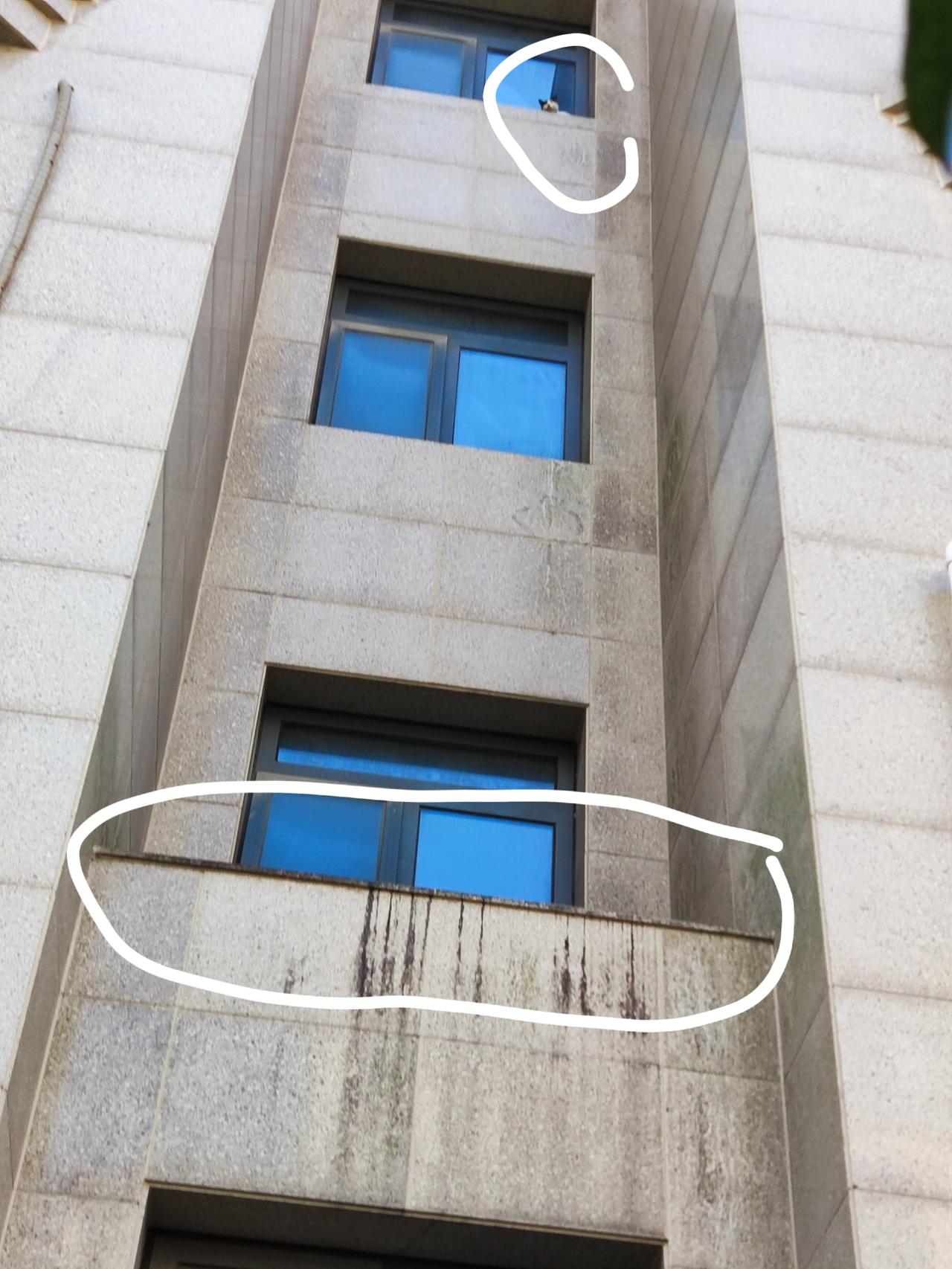 真是惊心动魄!小猫纵身一跃,从五楼跳下,我直接吓呆了,心里直念叨完了完了,肯定摔得血肉模糊了。 今早,我跟往常一样拿着猫粮准备去喂猫,突然传来一声声惨烈的猫叫。我循声找去,只见27幢5层楼的窗檐下,一只奶牛流浪猫正冲着我不停叫唤,估计是盼着我救它。 天哪!它怎么跑到那么高的地方去了? 我慌了神,赶忙坐电梯到了5楼,打算打开窗户,让它回到屋里的楼道。 可它显然吓坏了,一心只想往下跳,我也被吓得不轻,生怕它真跳下去,赶紧往后退。 后来,物业人员来了,径直过去想打开窗户,就在这时,它纵身一跃,从五楼跳了下去。 它很机灵,先跳到二楼的窗台上,再从二楼跳到地面,表面上是毫发无损,不知道有没有内伤。 天哪!真把我吓坏了,实在想不明白它是怎么跑上去的。