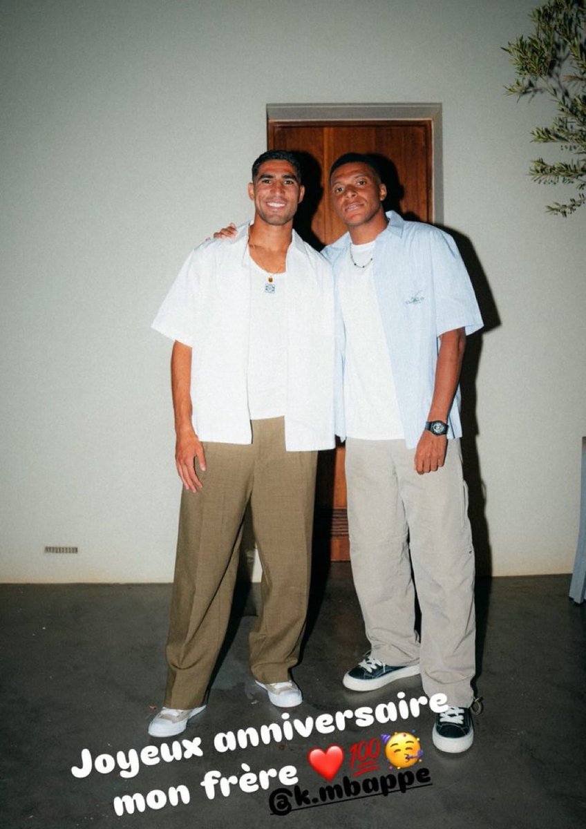 虎扑12月20日讯今天是皇马球员姆巴佩的27岁生日,他的好友,现效力于巴黎圣日耳曼的摩洛哥后卫阿什拉夫在ins更新了两人合照,并祝贺姆巴佩27岁生日快乐。