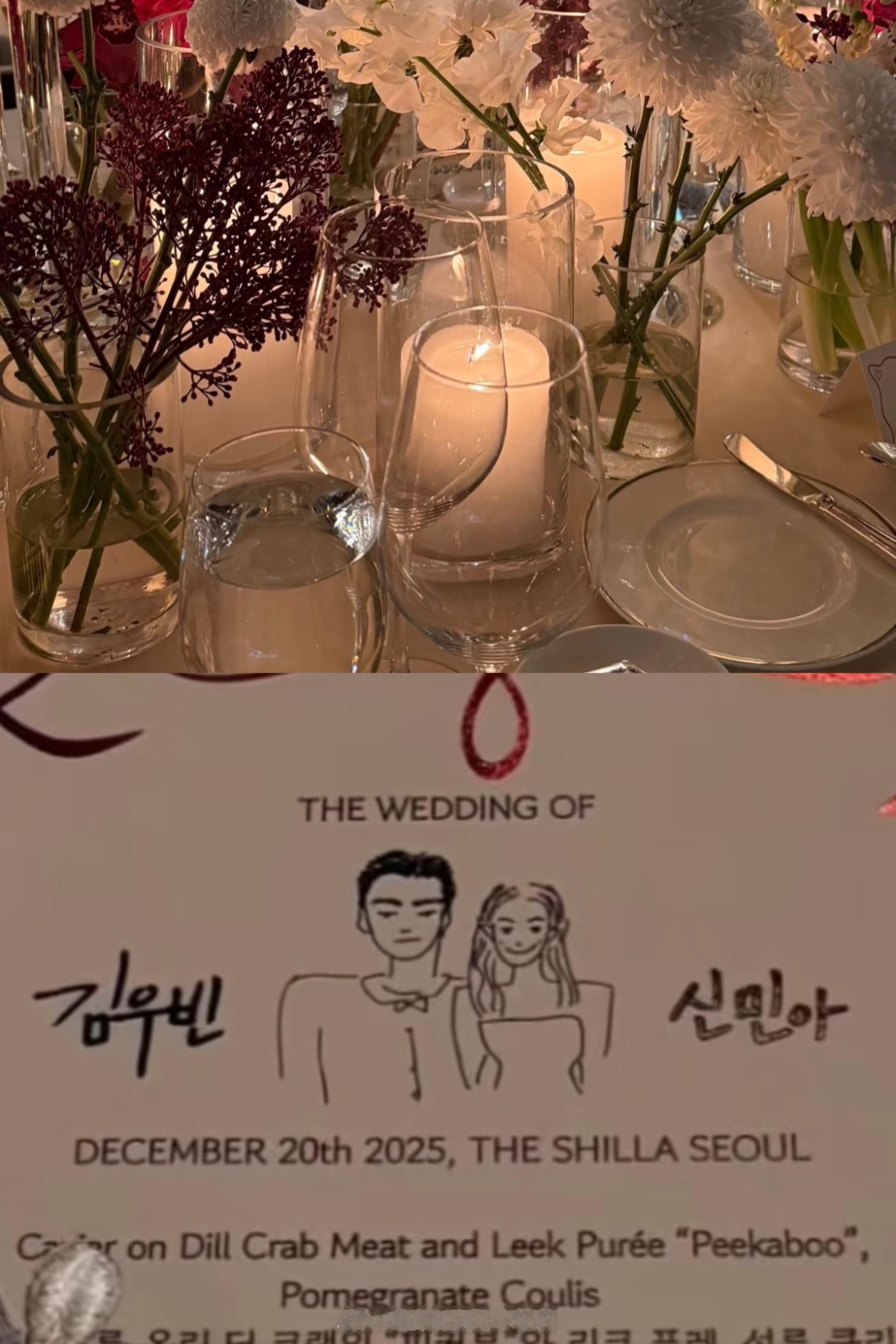 2025年12月20日,韩国顶流情侣金宇彬与申敏儿在首尔新罗酒店举行非公开婚礼。