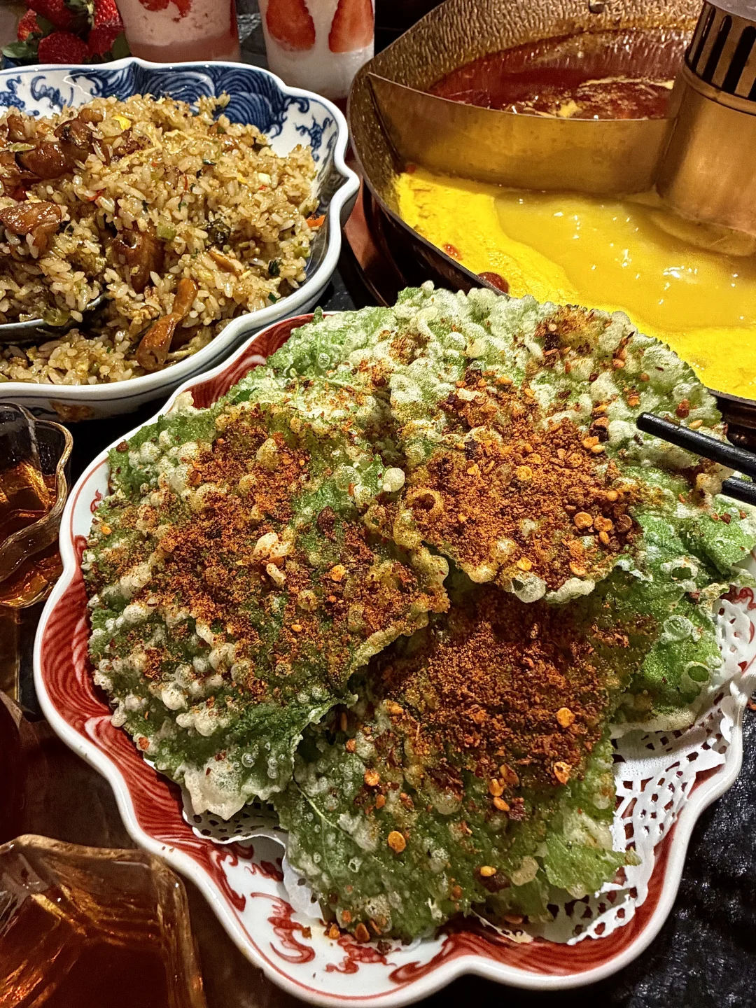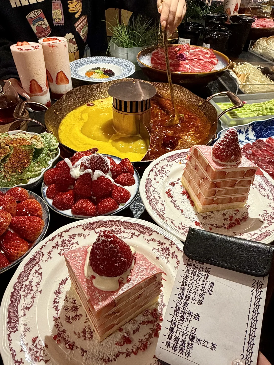 几十的火锅吼吼吃😭…… - ✔️肥肠炒饭 肥肠软软糯糯一口爆油💥一口气炫完一整碗!!! ✔️首尔草莓蛋糕 不用去首尔!上海也能吃到同款🍓草莓蛋糕啦!! ✔️圣诞莓果奶昔 还喝到了圣诞限定草莓奶昔~提前过圣诞噜🎄 上海 上海美食 上海美食攻略