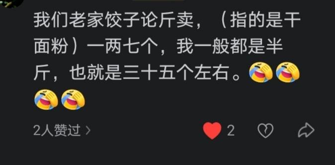 评论区说面粉半斤,饺子35个的人,你说一说一只饺子的重量。我买鸡蛋,一斤鸡蛋有8个,如果饺子的重量和鸡蛋差不多的话,连皮带馅料,一斤饺子按8个计算,四斤饺子有32个,你一次能吃4斤重的饺子?广州的煎饺子比北方的汤饺还重,两只煎饺子都有3两重了,10只煎饺子有一斤半,20只煎饺子有3斤重。
