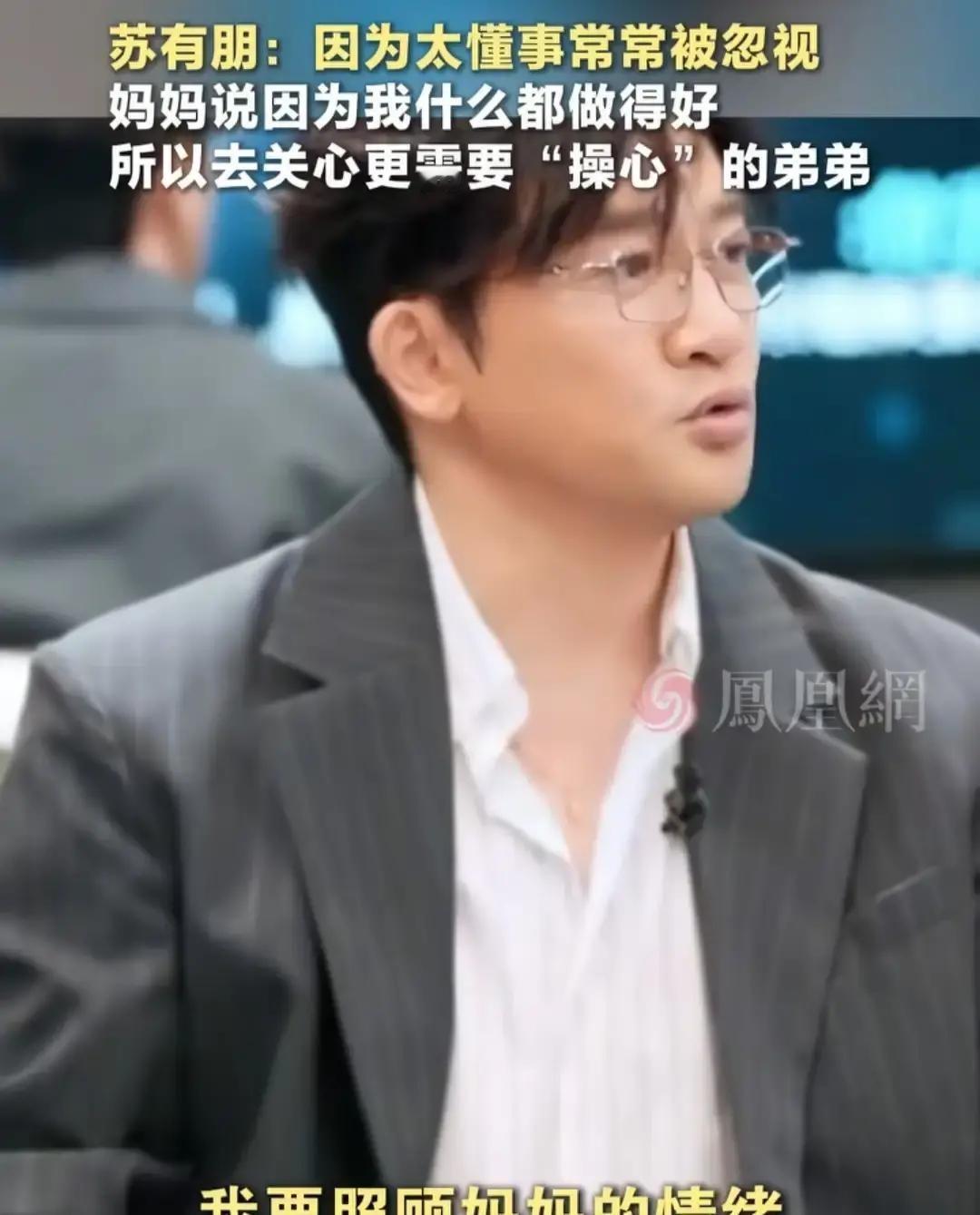 苏有朋在访谈里说到小时候妈妈眼里只有弟弟,自己像空气,声音直接哽住。 屏幕里他红着眼停了好几秒,我隔着手机都听见那口深呼吸。 乖乖虎、五阿哥、票房导演,一路金光闪闪,原来心里一直蹲着那个等夸奖却落空的小男生。 网友刷弹幕说“懂事的孩子没糖吃”,一句话把成年人击垮。 原生家庭这词听多了会麻木,可当他把旧伤口摊开,大家才想起自己也曾是透明人。 热搜爆了不奇怪,谁心里还没点旧疤,只是有人选择说出来,有人选择咽下去。 把伤口亮出来不是卖惨,是给还在暗处的小孩点灯。 愿我们都能先抱抱自己,再学着和解。