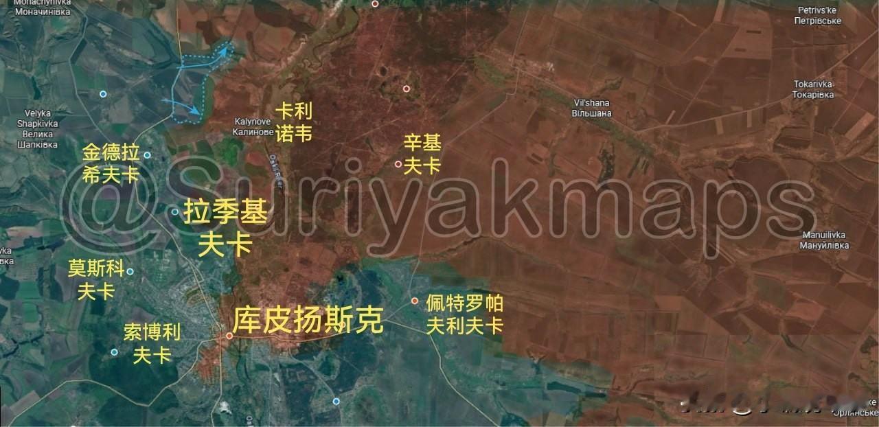 12月23日俄乌最新战报: 1.哈尔科夫州前线: ①经过三周的激烈战斗,俄军完全控制了普里利普卡村(图一)。 ②过去一周里,乌军从其在近期占领的金德拉希夫卡村向北推进,夺回了扎帕德涅村以南的泵站(图二)。 2.红军村前线: 过去五天里,俄军在赫里什涅村南部取得了新进展(图三)。 3.第聂伯罗彼得罗夫斯克州—扎波罗热州前线: ①随着乌军在过去六天内重新夺回新帕夫利夫卡村的中心区域,俄军在该村的处境持续恶化(图四)。 ②俄军完全控制了扎里奇涅村,并攻占了乌军主防线附近的战壕(图五)。