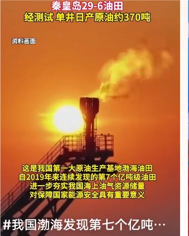 渤海发现第7个亿吨级油田 近日,我国在渤海地区取得了令人振奋的重大突破——成功