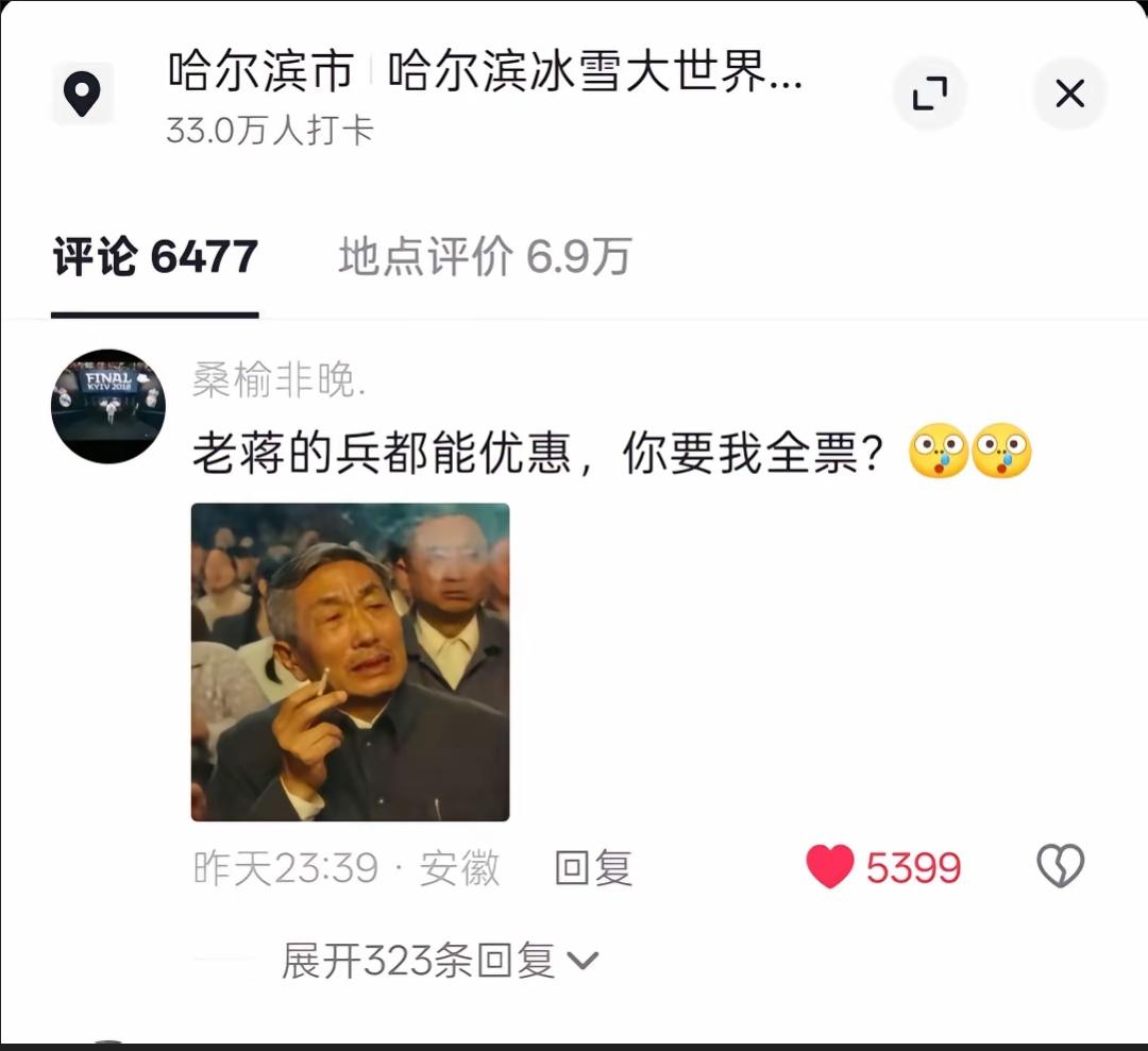 来自中国台湾的男青年使用退伍证,成功在哈尔滨冰雪大世界购买到优惠票! 大概率是看到有人曾经坐地铁享受到了优惠吧,这个人也问了一下景区的工作人员,景区的工作人员经过询问之后,发现是可以使用的。然后就给了这个人优惠票,成功的进入了哈尔滨冰雪大世界。 不管怎么说只要来大陆游玩,我们大陆的朋友都是挺欢迎的,谁都会欢迎自己的兄弟姐妹回自己家。 各位是怎么看的?欢迎评论区留言。