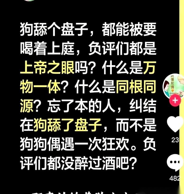 把狗弄上桌,俩脑袋凑一个盘子里吃涮羊肉,还拿手机拍视频炫耀,觉得自己特潮特有爱心
