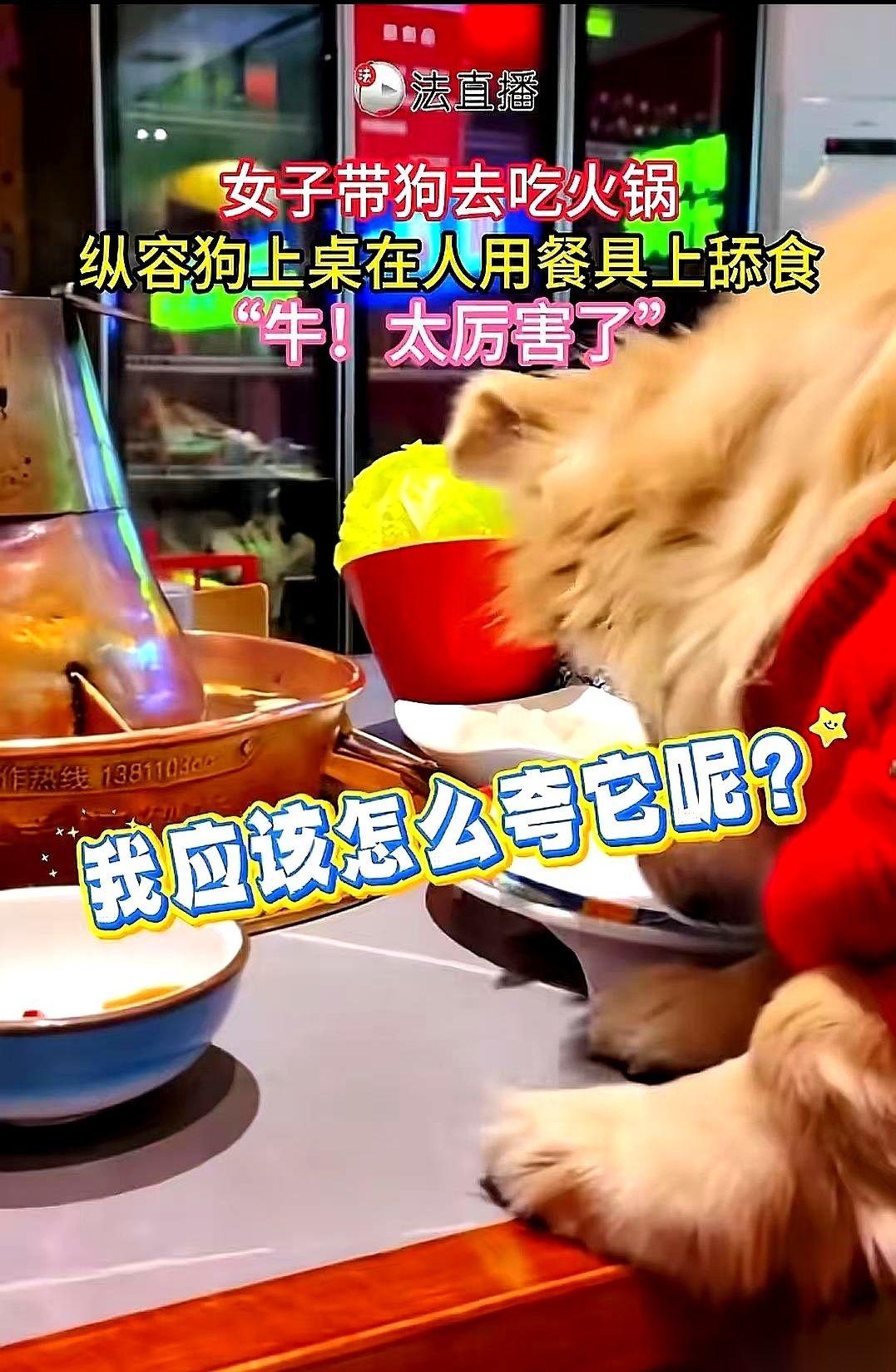 把狗弄上桌,俩脑袋凑一个盘子里吃涮羊肉,还拿手机拍视频炫耀,觉得自己特潮特有爱心是吧? 结果呢?老板是个狠人。二话不说,直接关店,全员免单,所有餐具厨具全部报废换新。 这一下,十几万的损失,就得这位“爱狗名媛”一个人扛。活该。 你以为这就完了?你以为她会道歉、会反省? 天真了。姐们儿转头就把视频删了,然后潇洒地带着狗去昆明旅游打卡了,日子过得那叫一个滋润。 被网友扒出她以前的言论,更是重量级—— “狗比人干净。” “不就舔个盘子吗?至于这么上纲上线?” 我真是……好家伙。 前阵子那个在海底捞让孩子往火锅里撒尿,最后赔了220万的教训,看来是一点没往心里去啊。 说白了,这事儿跟爱不爱狗,一毛钱关系都没有。 你在家,可以把你的“毛孩子”当祖宗供着,跟它同吃同睡,那是你的自由。 但这是公共餐厅。 你面前那个蘸料碗,上一位顾客用过,下一位顾客还要用。你觉得“狗比人干净”,那是你的世界观,你不能绑架所有人,逼着大家接受你的“宠物卫生标准”。 这是最基本的教养和对别人的尊重,懂吗? 老板那波关店换新的操作,是真的刚,也是真的无奈。 他是在为自己店的声誉负责,也是在为所有不知情的食客负责。 最膈应人的是什么? 是这种毫无边界感的、表演性质的“爱”,最后却要一个本本分分做生意的老板,和所有普普通通的消费者,来替她的“个性”和“炫耀”买单。 这哪是爱狗,这分明是爱自己爱到疯魔了。