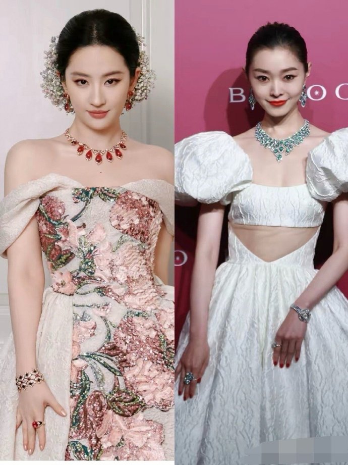 宝格丽这次真是选对人了,一眼就能注意到宋轶身上的珠宝。刘亦菲这边,输就输在脸太引人注目了。