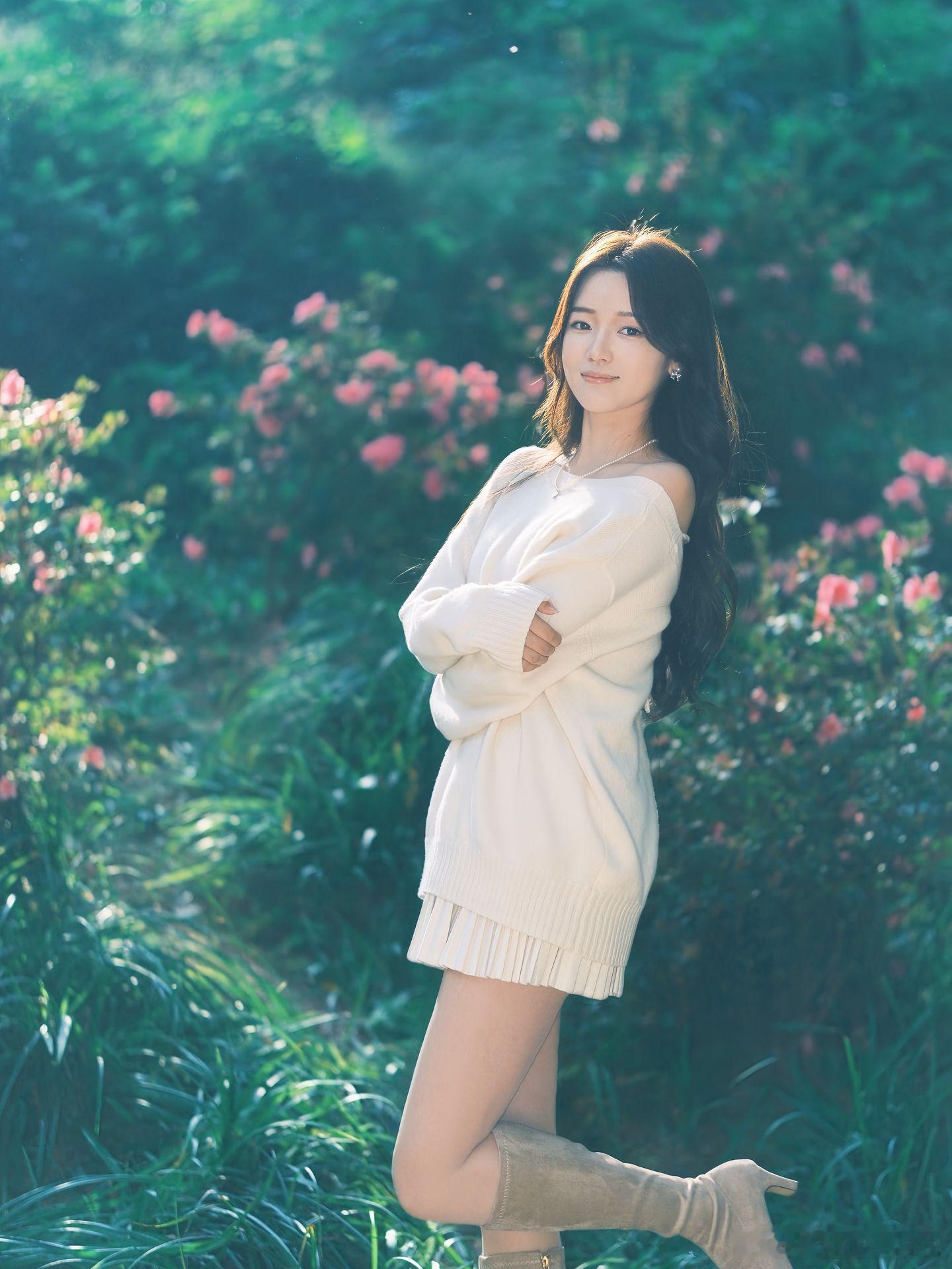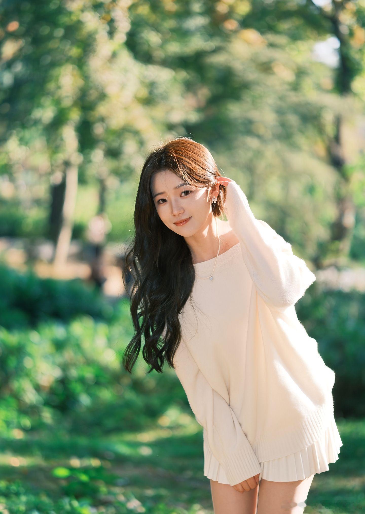 哈妮克孜写真精选:柔美白裙,精致甜美。哈妮克孜