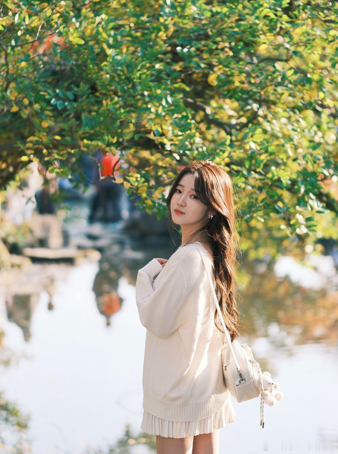 如何拍出户外氛围感美女?溪畔白影溪流揉碎了光石上栖着一缕白纱风掠过肩