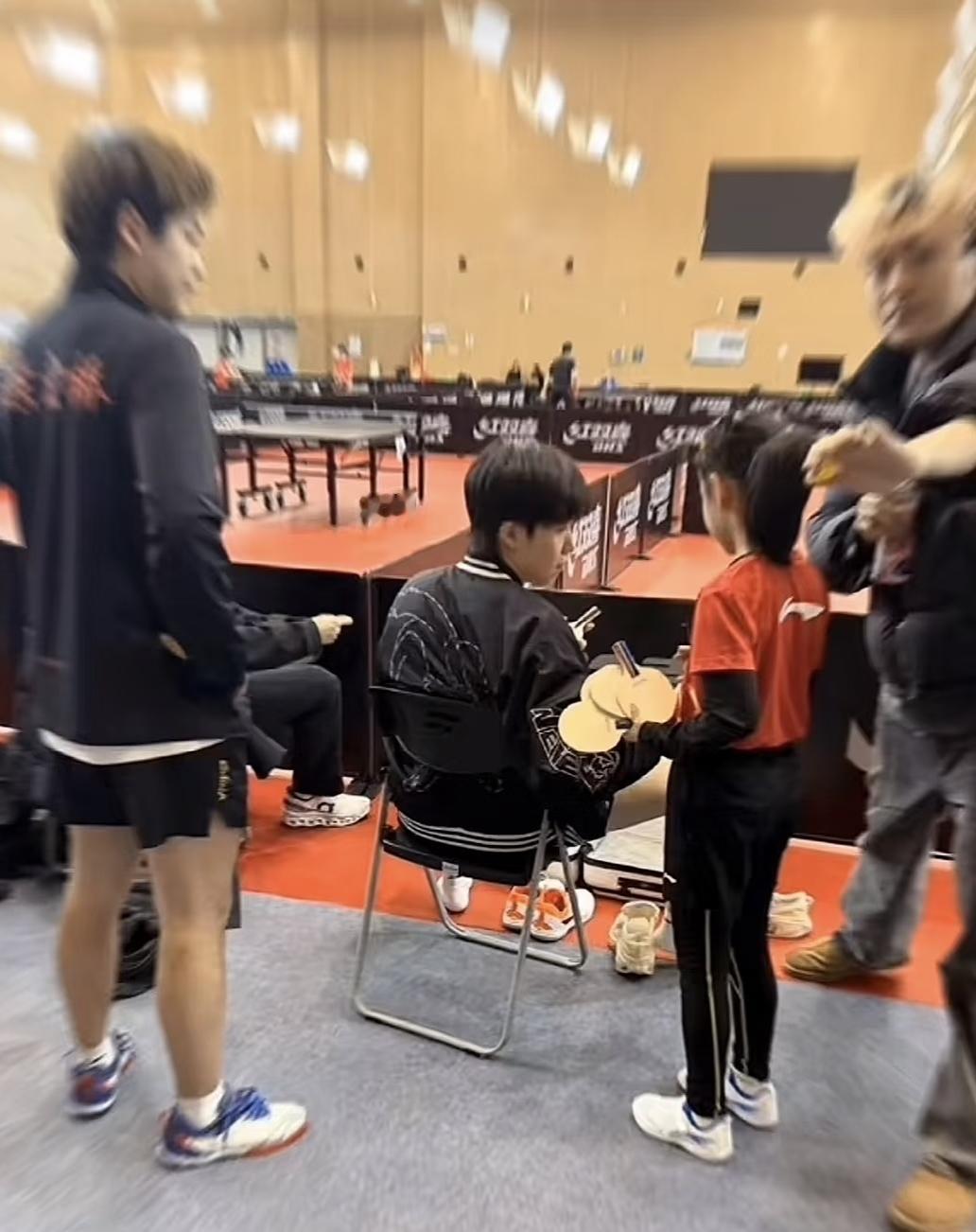 王楚钦最新乒超联赛总决赛训练结束后,为来要签名的小妹妹签名。不过这小妹妹也拿太多
