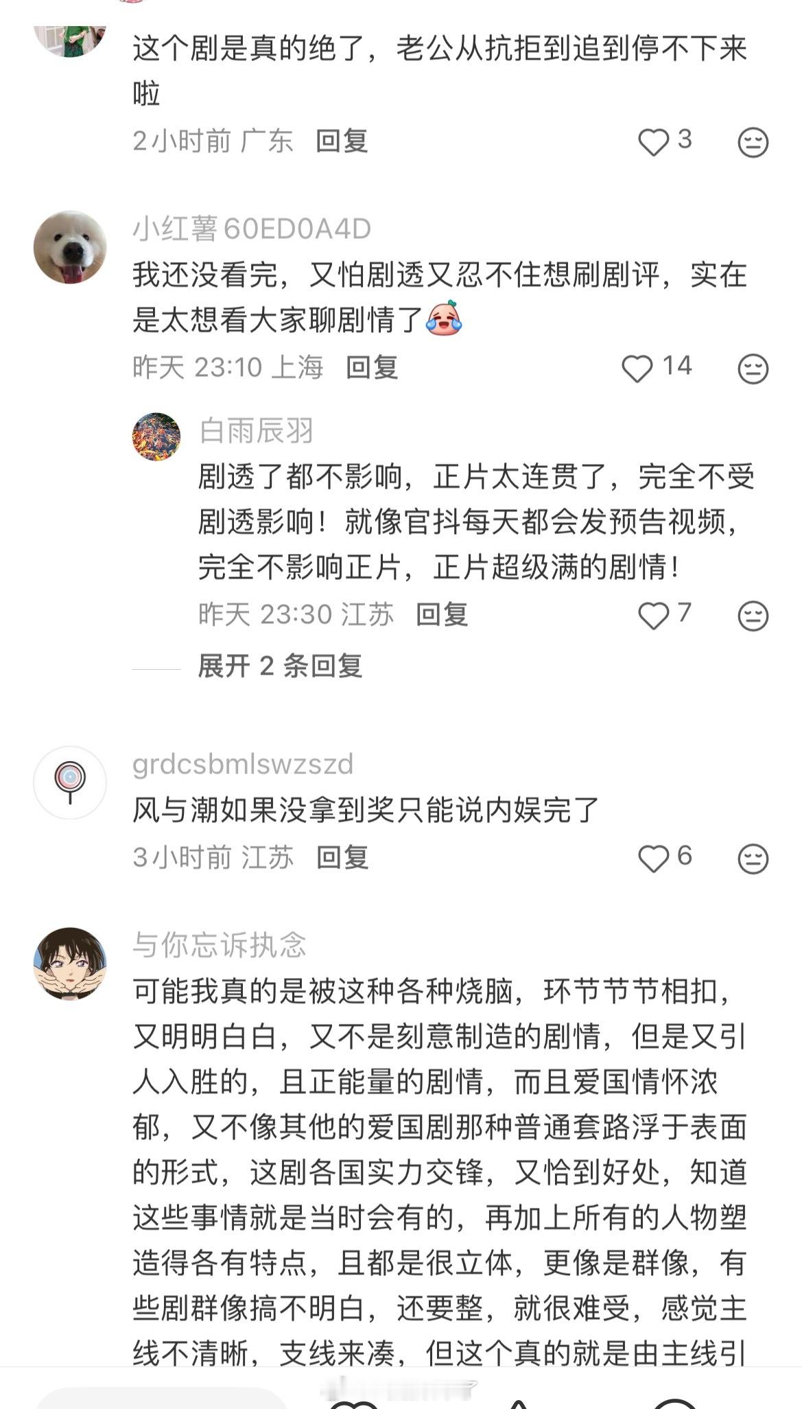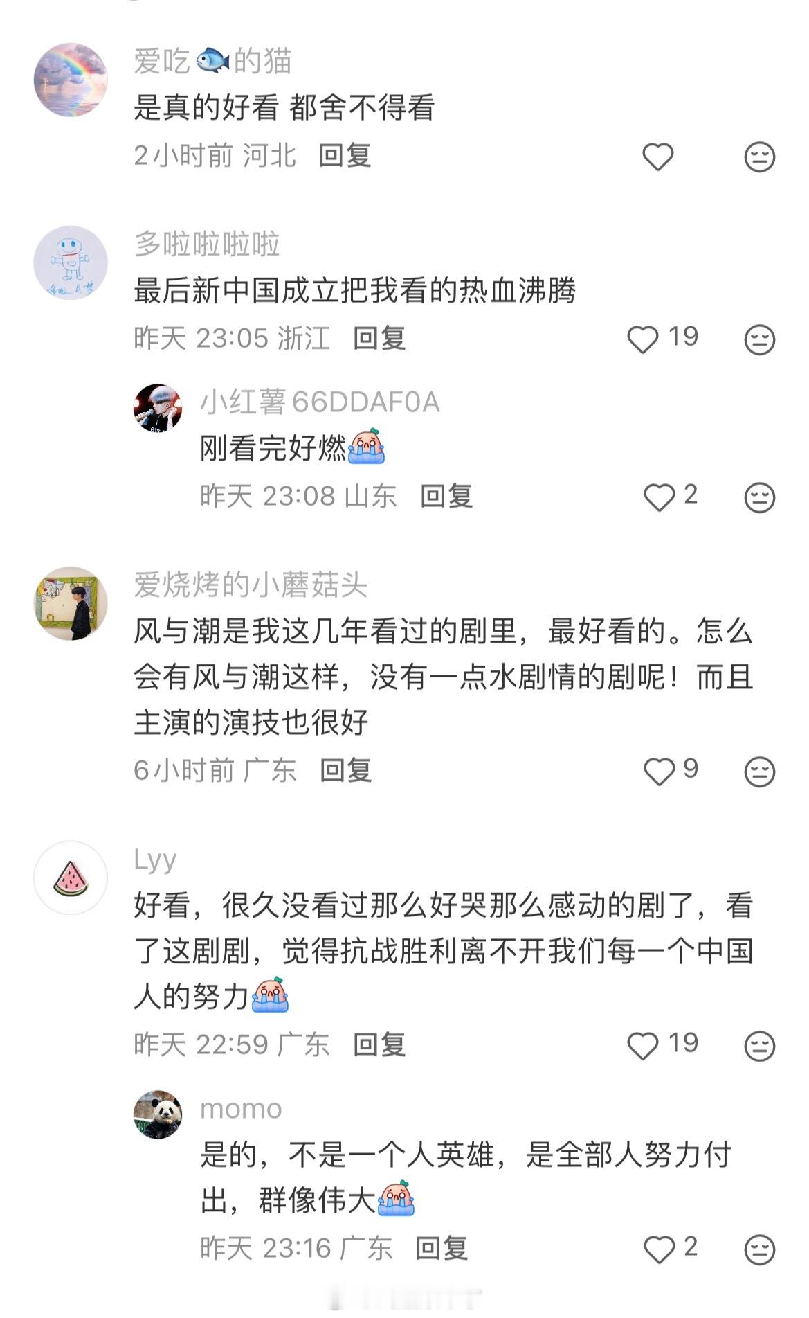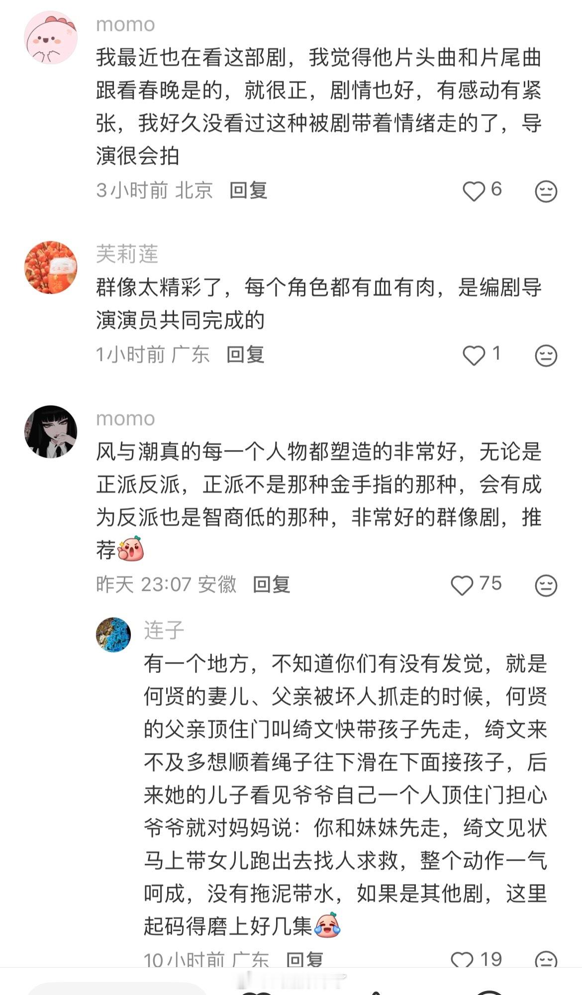 别的剧:你忍过前几集就好看了!《风与潮》:只要你打开就肯定会爱上!真真的好剧就是这么有底气!全方位无短板,没有一个废镜头,没有一句废话,《风与潮》的路人好评根本截不完看不完,这部剧就是长剧之光,值得拿奖!拿很多很多奖!