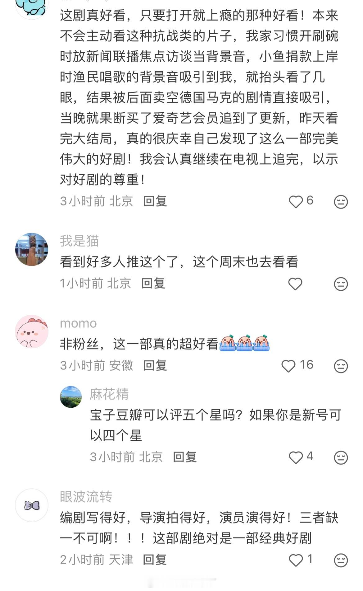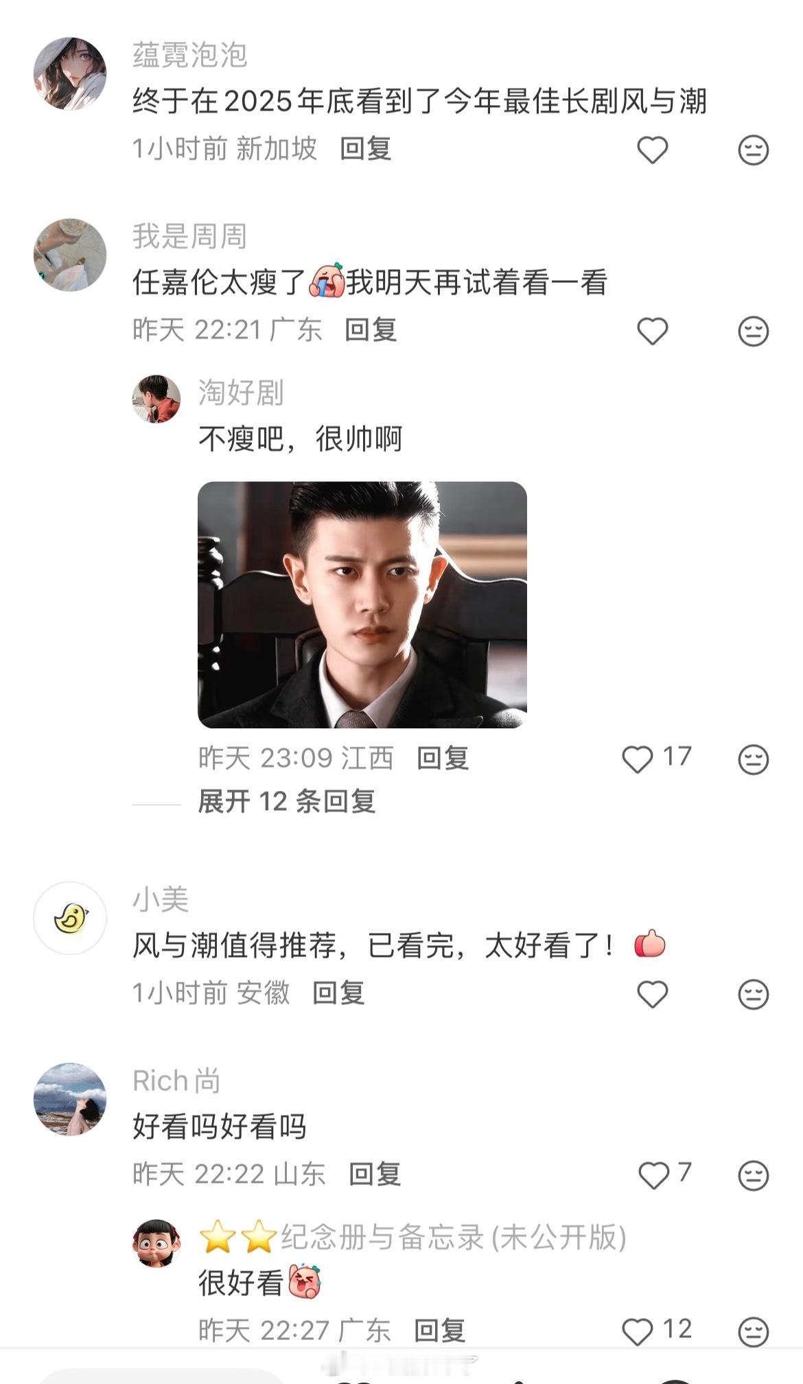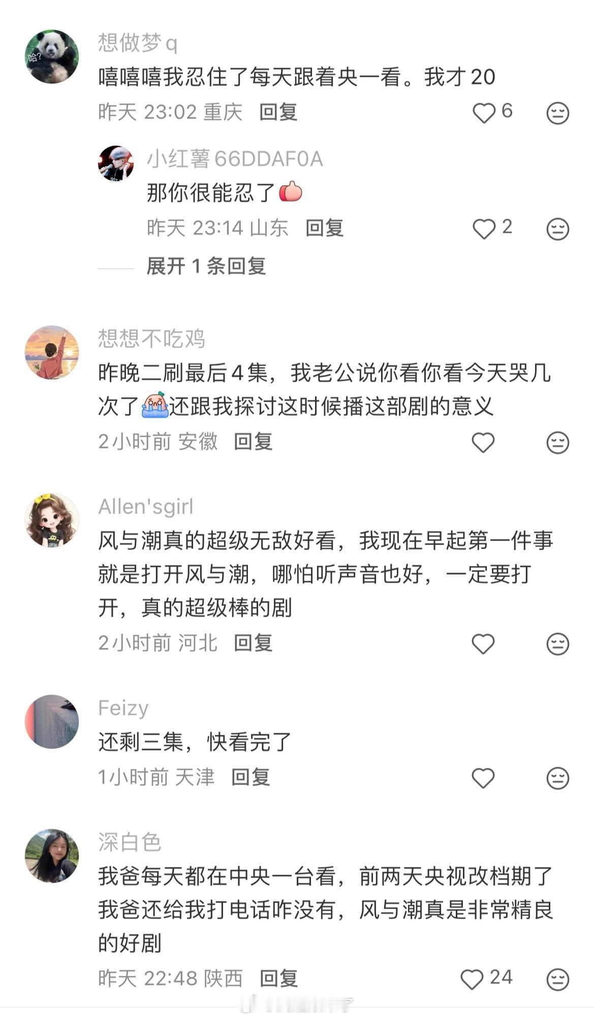 别的剧:你忍过前几集就好看了!《风与潮》:只要你打开就肯定会爱上!真真的好剧就是这么有底气!全方位无短板,没有一个废镜头,没有一句废话,《风与潮》的路人好评根本截不完看不完,这部剧就是长剧之光,值得拿奖!拿很多很多奖!