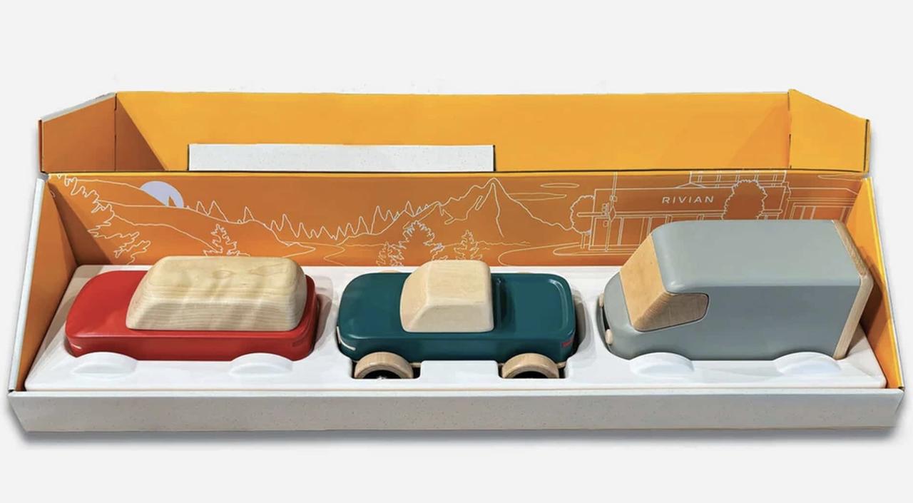 这家新势力推木头玩具车模型,一套150美元 新势力喜欢出周边,而且卖得都不便宜,比如特斯拉的口哨、洋酒。美国新势力Rivian最近推出了一个礼盒套装,很有圣诞氛围,三个木头的玩具车,售价150美元。 礼盒包括R1S、R1T和一个MPV模型,桦木手工打造,车顶能和滑板底座自由组合。和特斯拉50美元一个的口哨相比,Rivian这套玩具价格似乎也没那么夸张。【来自懂车帝车友圈】