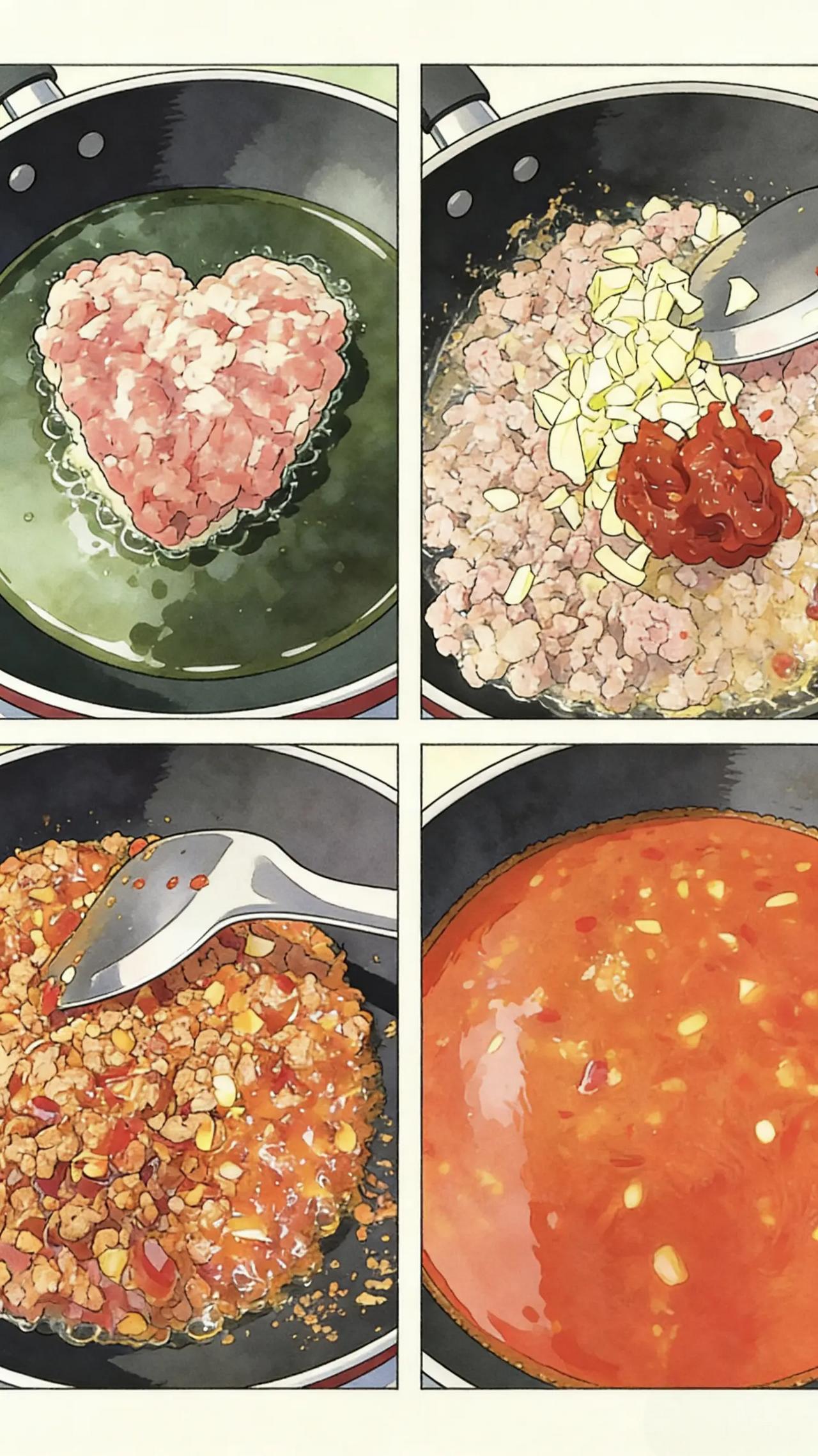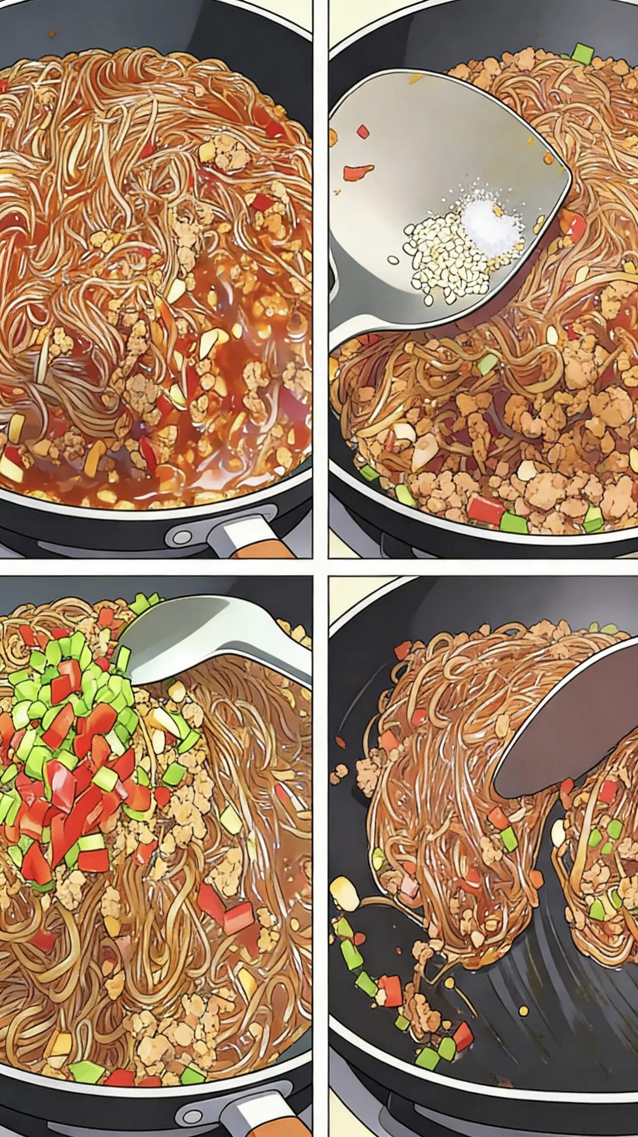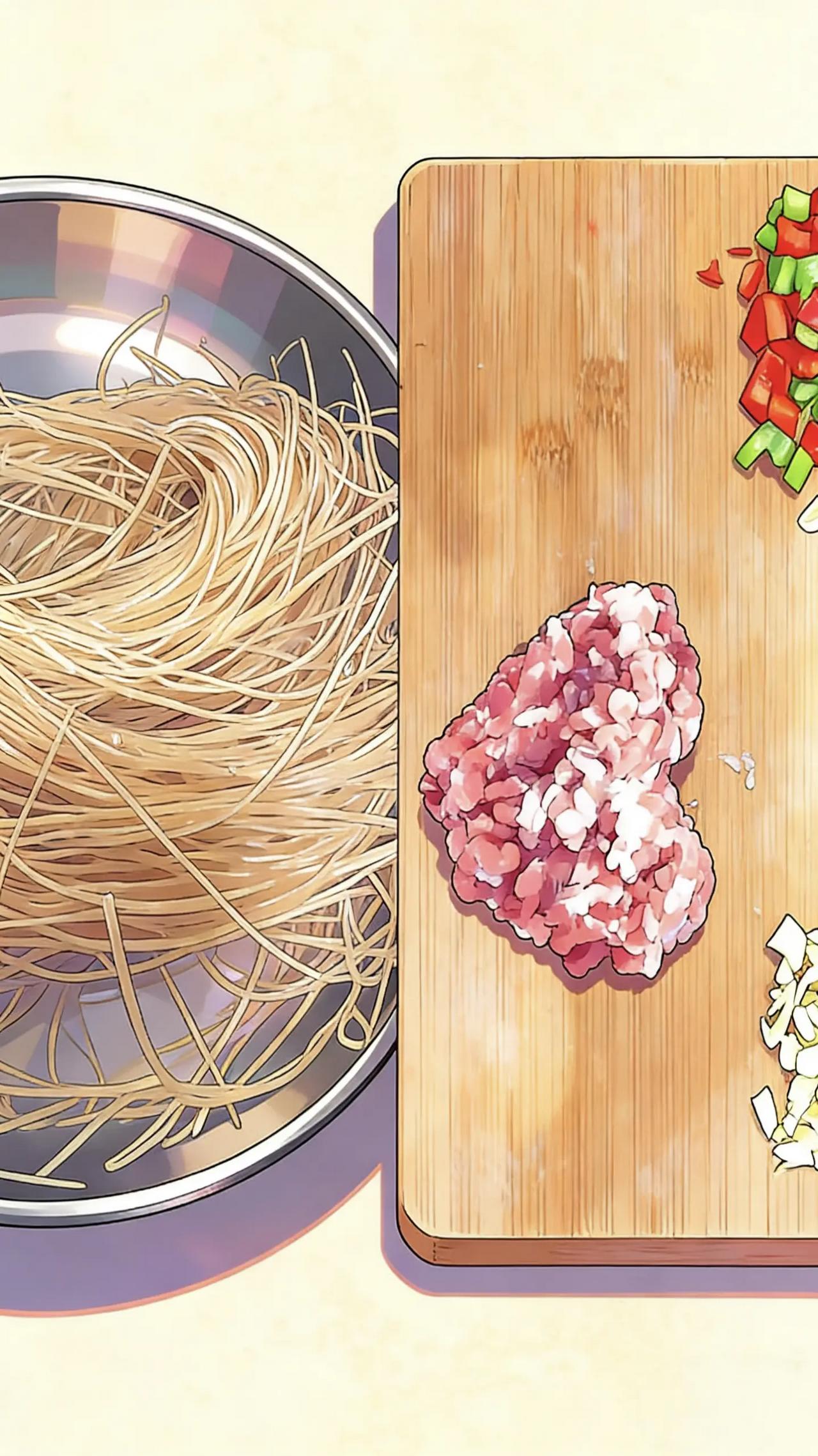 蚂蚁上树。蚂蚁上树——肉沫粉条家常下饭菜,根根入味,香辣过瘾---用料· 肉沫:150g(约小拳头大小)· 红薯粉条:1把(约手腕粗细)· 青红椒:适量(能吃辣可换成线椒+小米辣)· 豆瓣酱:2勺· 生抽:1勺· 老抽/蚝油:各半勺· 盐/鸡精:各小半勺· 蒜:4-5瓣,切末---做法步骤步骤 1:准备食材· 红薯粉条提前半天用冷水泡软,或温水泡15-20分钟。· 青红椒切丁(吃辣可换线椒、小米辣切圈)。· 肉馅备好,蒜切末。步骤 2:炒香底料· 锅中热油,下肉沫炒散。· 加入蒜末、2勺豆瓣酱,炒出红油和香味。· 倒入一大碗清水。步骤 3:调味煮粉· 锅中加1勺生抽、半勺老抽、半勺蚝油,调匀。· 放入泡软的粉条,转小火焖3-5分钟,至粉条透明、无硬芯。步骤 4:收汁加辣· 调入少许盐、鸡精(口味淡可先尝味再决定是否加盐)。· 撒入辣椒粒,转大火收汁即可。---小贴士1. 粉条泡软后再煮,更易入味且不易粘锅。2. 收汁时注意翻动,让每根粉条裹满酱汁。3. 辣度可随喜好调整,加点花椒更麻辣过瘾!---香辣滑嫩的蚂蚁上树,配米饭绝了!快试试吧~美食 美食视频 美食插画 漫画美食