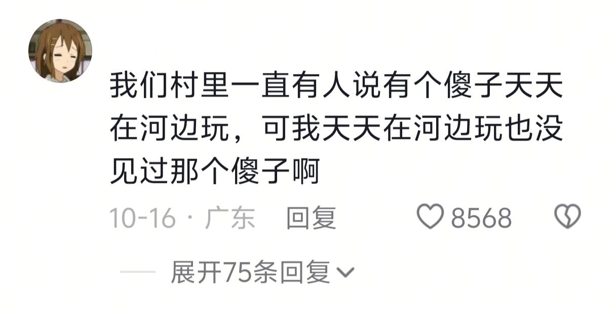 我们村里一直有人说有个傻子天天在河边玩,可我天天在河边玩也没见过那个傻子啊