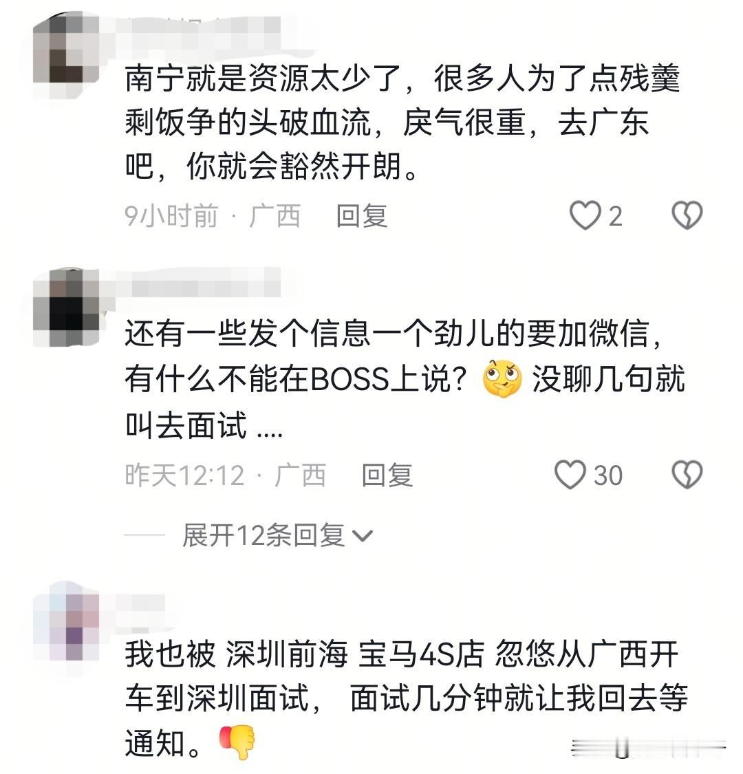 太嚣张了!近日,广西南宁,一求职者因为没有去面试被人事辱骂:“你是不是有人生,没人教养”引发网友关注。 据该求职者称,自己向这家车行投了简历之后,和人事加了微信,但是在询问薪酬结构的时候,人事表示需要线下面谈。 最讨厌这种需要线下谈薪的,工资高也就算了,工资低还想让人家也跑一趟,95%的都是想刷KPI的。 我想请问是多高的工资啊,需要线下面谈,在线上不能说吗?是工资低的说不出口吗? 该求职者表示,自己也不想白跑一趟,所以就没有去。没想到遭到人事的辱骂,还威胁自己要把他挂到全广西车行人事群里去。 目前,该公司回应涉事人事已经被免职,会尽全力弥补伤害。 好了吧,现在自己的工作也丢了,也要去找工作了,看他找工作的时候问不问工资。 有网友表示【薪资构成现在基本好一点的企业都是二面或者三面才说吧,一面都没参加就问当然不好吧】 说实话,现在谁工作不是为了钱呀,难道为了一腔热情,为了自己的爱好吗,工资都不愿意说,有什么好面试的,而且一些公司在线上挂的工资和到线下的时候又不一样了。 公司可以筛选面试者,同样面试者也会筛选公司的,都是双向选择。 在这件事你怎么看呢?欢迎表达您的观点。