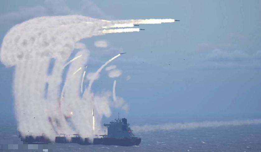 055万吨大驱发射鹰击-20反舰导弹。鹰击-20弹长约8.8米、弹径0.8米、发