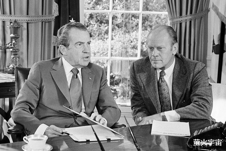 当年尼克松因水门事件主动辞职,他的副总统福特接任成为美国第38任总统。