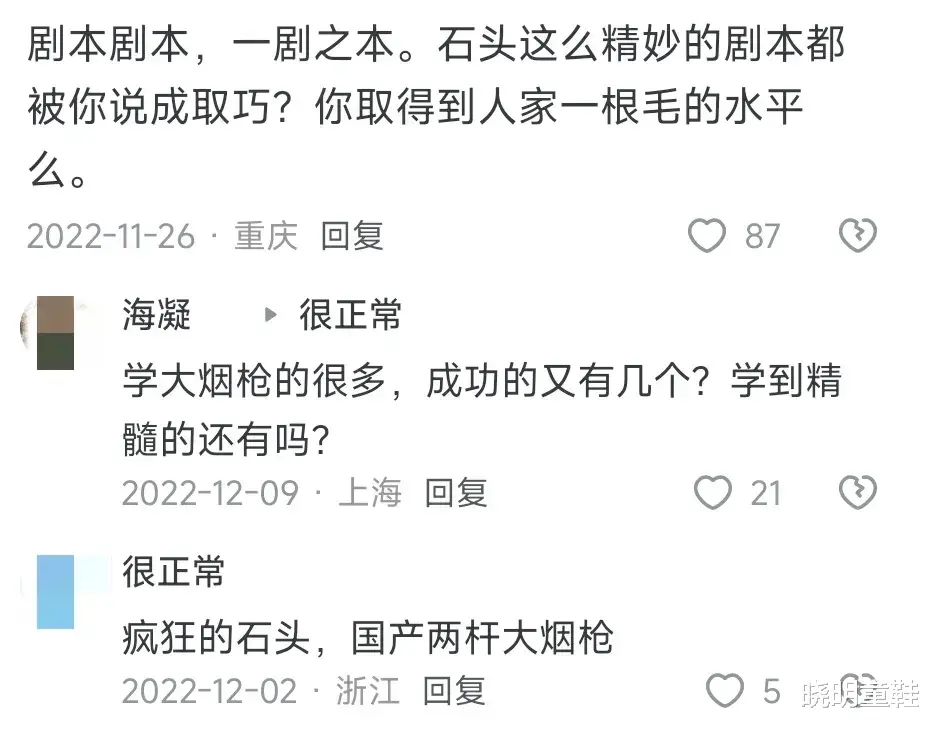 什么是优秀作品,不是玩烂梗,而是有清晰的故事线,所有的点相互穿插围绕线展开,而梗是围绕着点展开的,而不是为玩梗而玩梗。