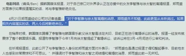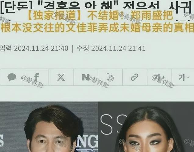 据韩媒爆料,郑雨盛与文佳碧于2022年相识,随后发生关系,文佳碧于2023年3月份怀孕。郑雨盛的态度很明确:负责养育,取名,提供物质支持,但拒绝婚姻。
