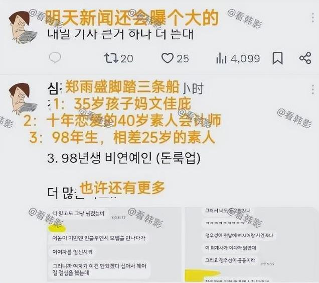 原来,除了文佳碧之外,郑雨盛还同时与多名女性保持着恋爱关系。其中一位,是他公开承认的98年生的素人女友,年轻貌美,与他相差25岁。