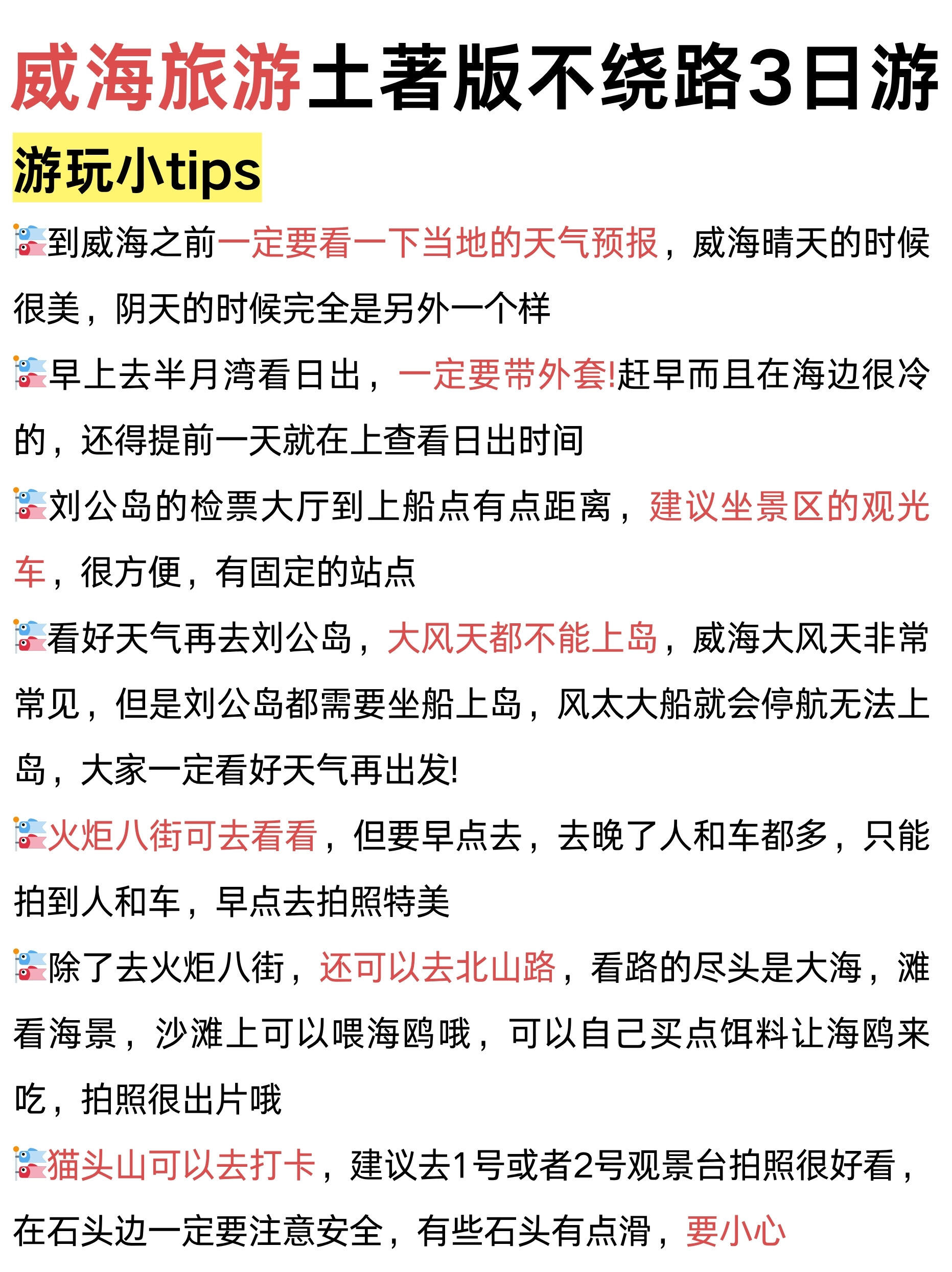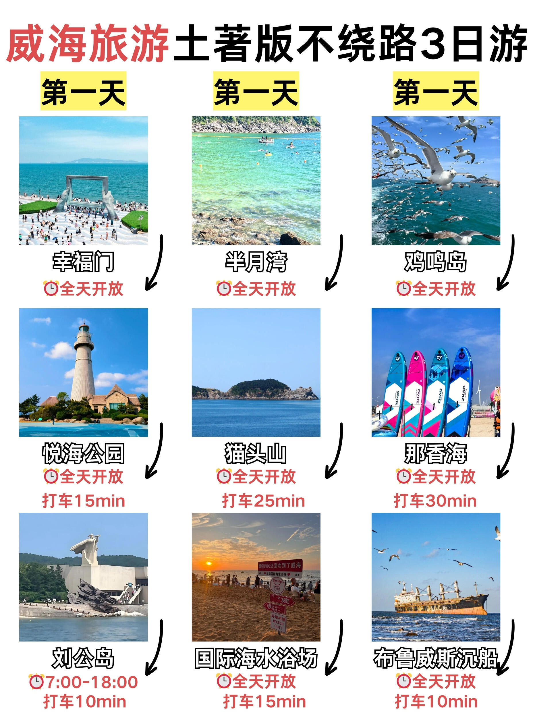 很多人来威海玩一点攻略也不做,来玩的时候一直在几个景点之间绕来绕去,在路上浪费了不少时间,其实来玩的时候花半小时时间提前看看攻略👀,能让旅途更加开心省心!🙋🏻‍♀️