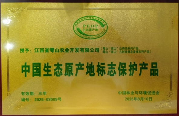 近日,中国林业与环境促进会生态原产地工作委员会发布2025年第07号生态原产地保护产品评定名单。江西省雩山农业开发有限公司申报的雩山(高山)山茶油、雩山古树香榧、雩山沙地红薯三大系列产品全部入选,标志着乐安县在推动生态产品价值实现、建设绿色农业品牌方面取得重要突破。
