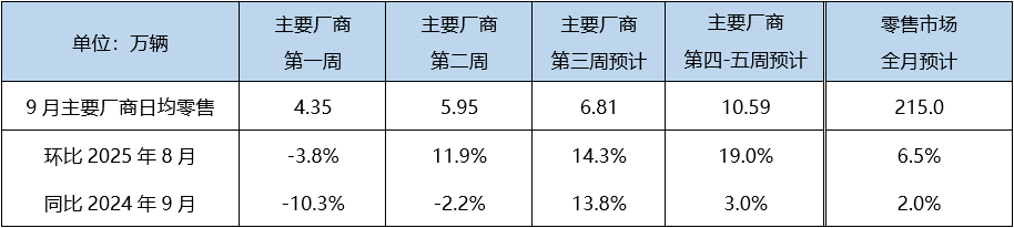 乘联分会发布了9月乘用车零售预估数据。最新厂商调研数据显示,占市场总销量近八成的头部厂商本月零售目标普遍较高,同环比均有所提升,综合政策支撑与旺季需求释放,预计本月狭义乘用车零售市场规模可达215万辆左右,环比增长6.5%,同比增长2.0%。其中,新能源零售量预计125万辆左右,渗透率有望攀升至58.1%,再创历史新高。