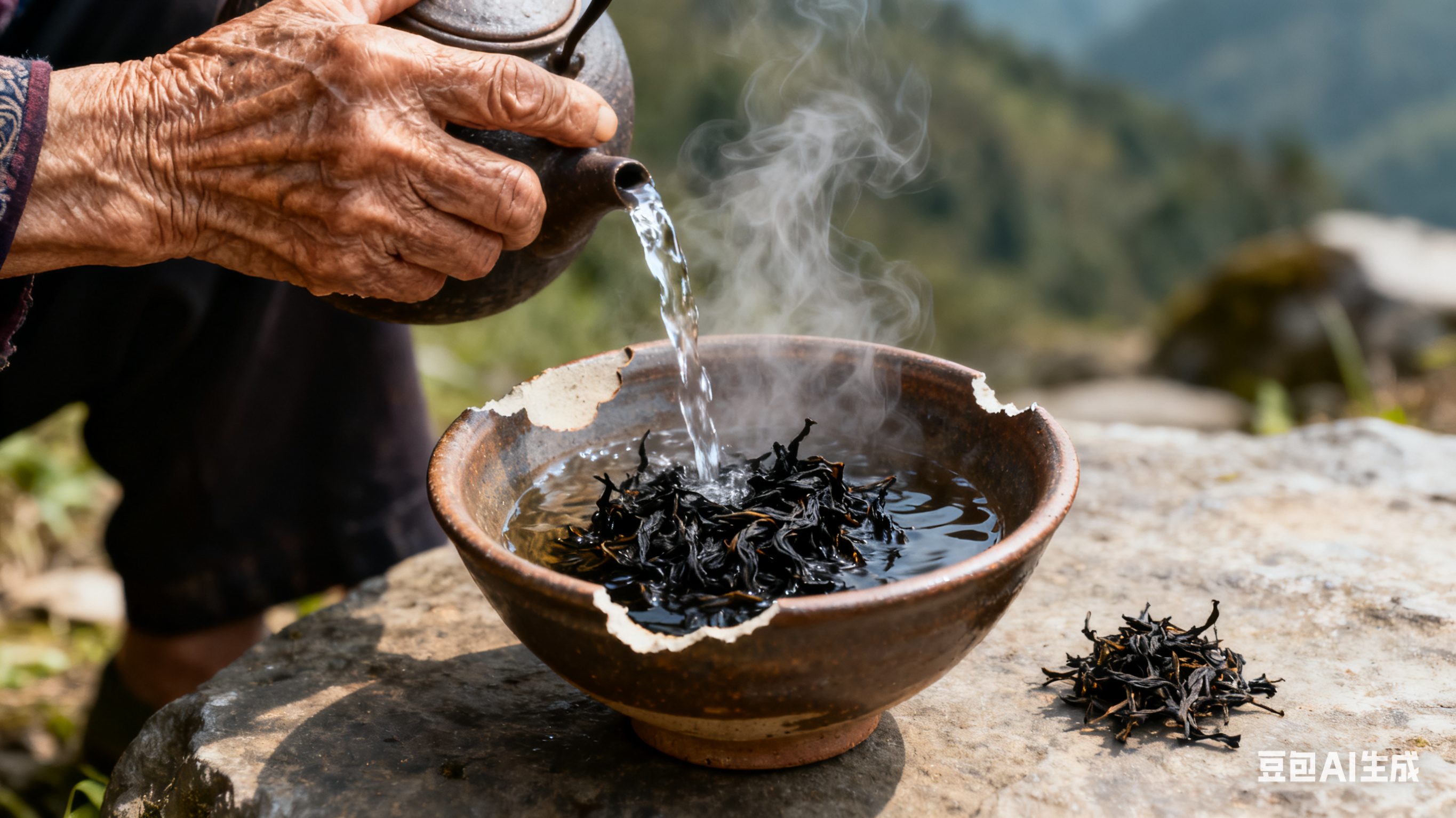 “我奶奶咳得睡不着觉,求您了。”阿秀把鸡蛋递过去,眼眶红红的。老茶婆看着她,慢慢起身,从屋里拿出一小撮黑乎乎的茶叶,放进那只缺口的粗陶碗里,又用山泉水冲泡。茶叶在碗里舒展,冒出一股清苦又醇厚的香气。