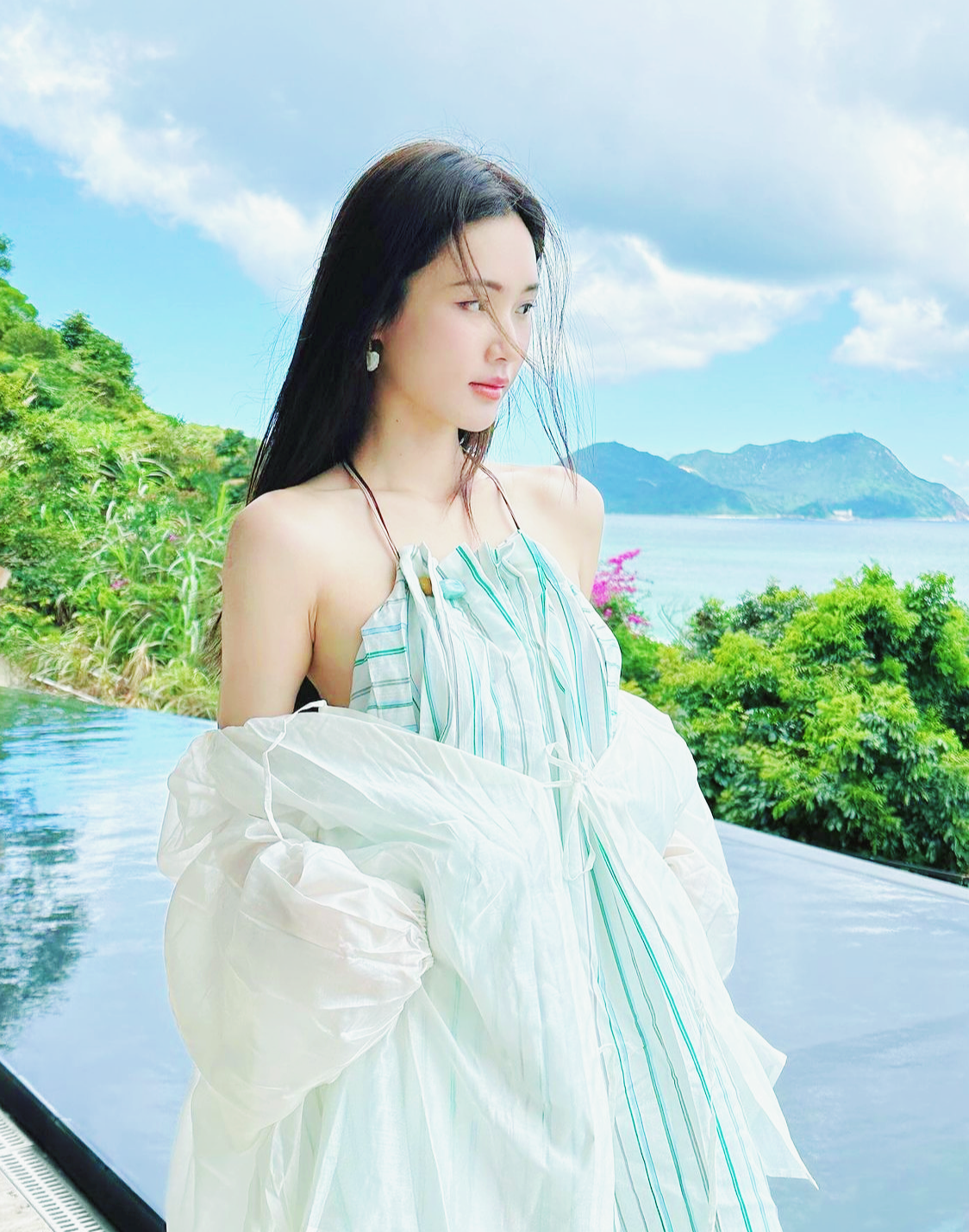 在蓝天湖泊的映衬下,清纯美女们身着盐系穿搭,展现出一种简约而不失优雅的风格。吊带条纹裙是这一风格的代表之一,它以细腻的剪裁和经典的条纹设计,勾勒出女性柔美的曲线,同时散发出一种清新脱俗的气息。