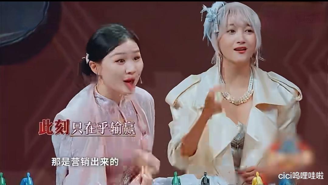 事件起于节目经典环节“正话反说”。当嘉宾闫妮因紧张将反话全说成正面夸赞时,游戏规则陷入僵局。此时,关晓彤与金靖瞬间开启“极限狡辩”模式:金靖抢白“她们关系其实不好!拍戏都是同事”,关晓彤秒接“那是营销出来的!”,两人齐声总结“很顺理成章的一个解释”。急到冒汗的表情配合离谱台词,既化解了规则漏洞,更以荒诞逻辑制造出爆笑效果。网友惊叹:“连营销都敢拆,这嘴比脑子快十倍!”
