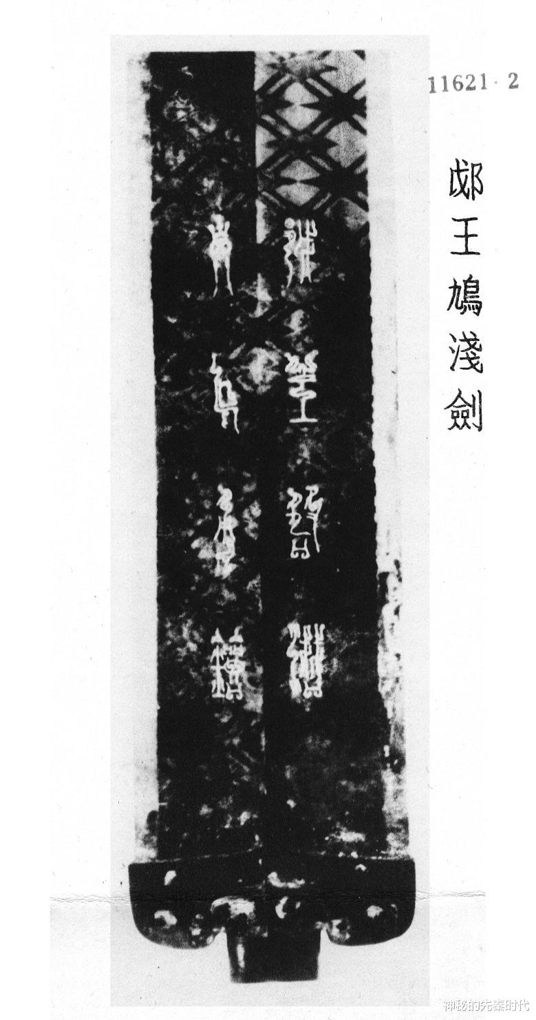 “越王勾践剑”铭文释文:“邑戉(越)王九欠(勾)浅(践)自乍(作)用剑”。