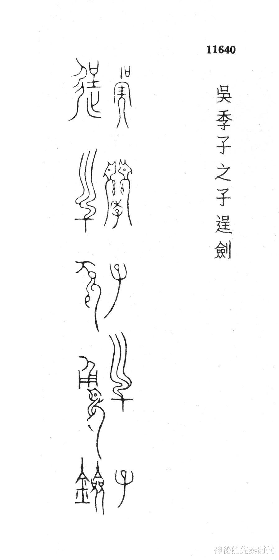 王:剑铭“王”字下部是“王”字,上部附加一对对称性的鸟形。