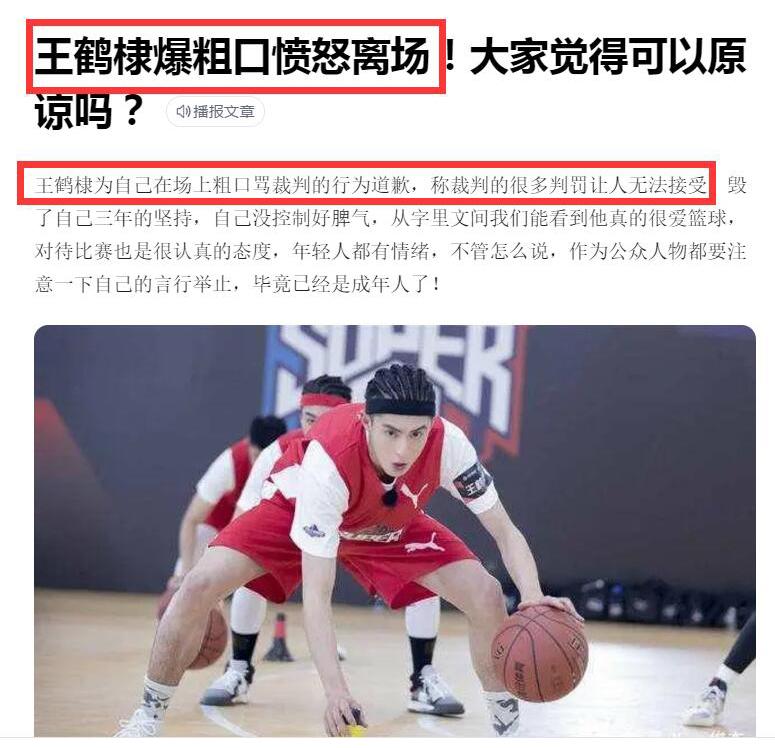 这件事情一度掀起不小的热议,之后王鹤棣还为自己在场上粗口骂裁判的行为道歉,称裁判的很多判罚让人无法接受。