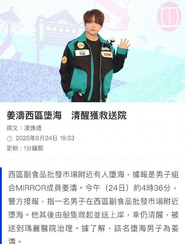 6月24日下午四点多,香港的一个副食批发市场附近的渔船发现一名男子坠海,渔民赶紧开船过去把人救起来,没想到坠海之人竟然是顶流姜涛。由于救援及时,姜涛被救上时人还是清醒的。