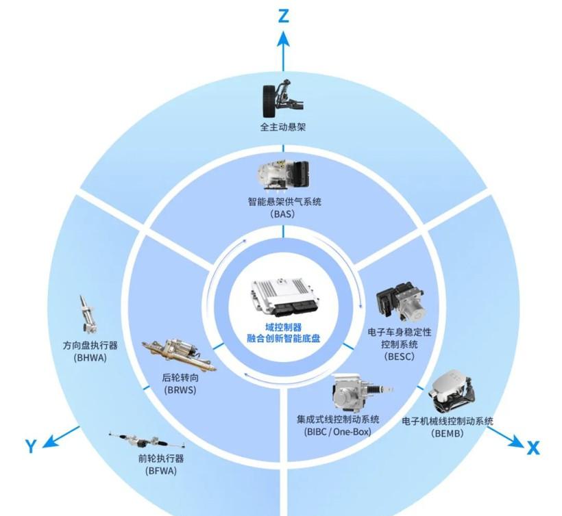 比博斯特此次展示的核心技术,就是其XYZ三轴产品,分别对应着制动、转向和悬架三个关键系统。这三个系统并非孤立存在,而是通过一个“超级大脑”——ECC底盘域控系统——进行协同控制,从而实现车辆在各种复杂路况下的最佳性能表现。