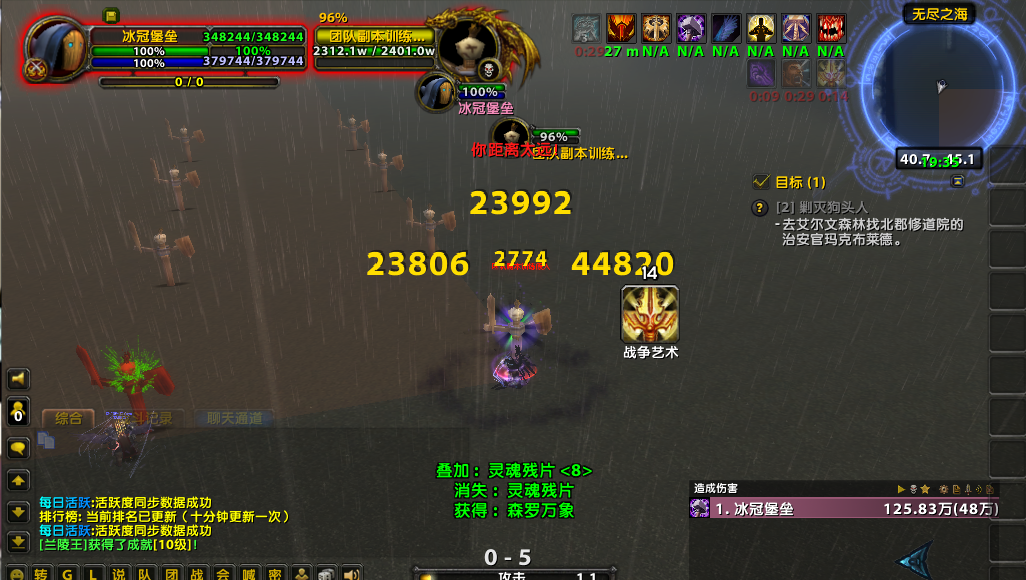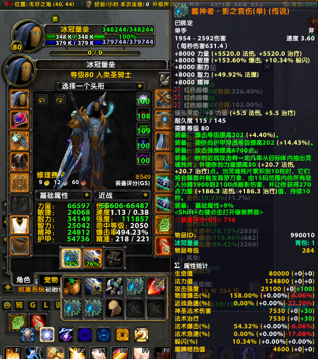 单次攻击最高能到4万的伤害数值,并且因为是单手双持,攻击频率更是高的离谱,快速1.2的攻速,慢速3.6,魔兽中有个定律,主手慢速副手快速可以打出最高伤害,双手骑士尤其是惩戒骑士就变的更加强大