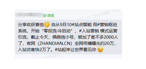 9月10日,首个预热落地页(ZHANDIAN.VIP)初步上线,经好友协调,22.CN爱名网协助宣推后,短短十多天,站点智能在团队共同合力下“零投流,冷启动”,截止目前,成效十分可观: