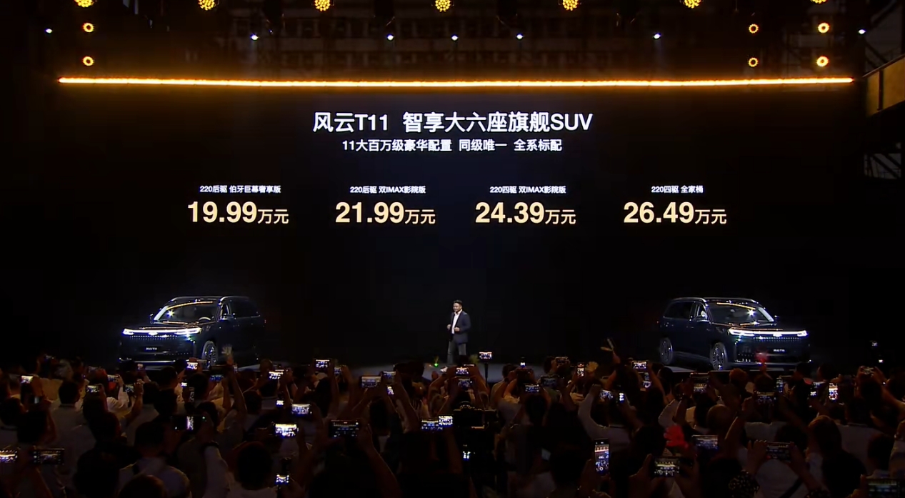 预订已超2.3万多台的风云T11现已开启预售,还有多大11项的全标高配,这款超安全、大空间、更豪华、好智慧的“智享大六座旗舰SUV”能否成为中大型SUV的又一畅销车型,尚待市场检验。