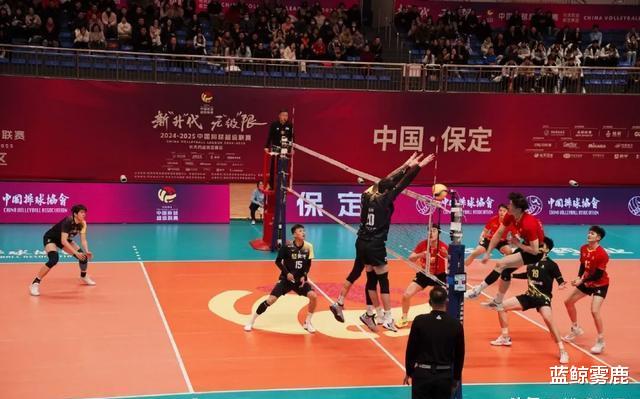 第二局比赛开始后,保定队的表现相当出色,一直掌控着场上的主动局面呢。在比分上,他们以7比5领先于山东队。这时候,山东队发现局势不太有利,就果断地请求了暂停,打算好好调整一下战术,争取能扭转局面。暂停结束后,山东队重新回到场上,他们着重在拦网这个环节进行了更有针对性的部署安排,想着能借此限制住保定队的进攻呢。可没想到的是,尽管做了这些努力,保定队的进攻节奏还是没能被有效地遏制住。就在大家都紧盯着赛场的时候,保定队的外援希罗维奇表现得特别亮眼,只见他高高跃起,来了一记非常强势的扣杀,那球就像长了眼睛一样,直直地落在了底线附近,根本不给对手反应的机会。就这样,凭借着整体的出色发挥,保定队以25比19的比分又拿下了这一局比赛。