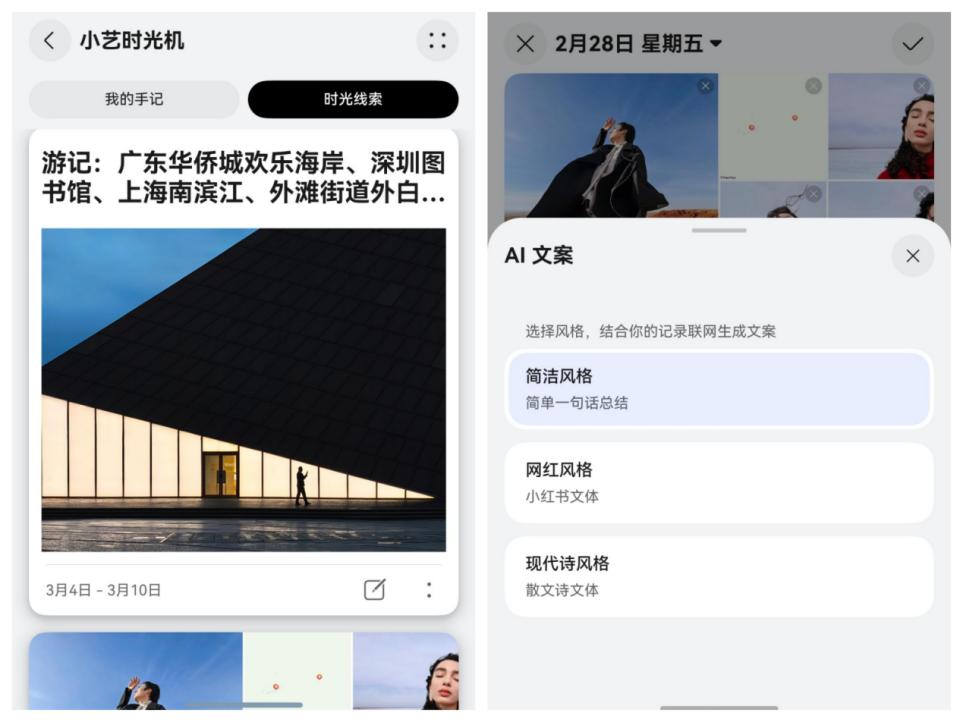 看着屏幕上按时间线和地点梳理好的相册,旅行时的松弛感瞬间回来。小艺时光机Agent就像一道时光任意门,把我从格子间瞬间拉回那个自由自在的午后。我点开“AI文案”,生成的文字温柔描述着当时的情景,帮我把那种难以言说的惬意和快乐,清晰地“复习”了一遍。