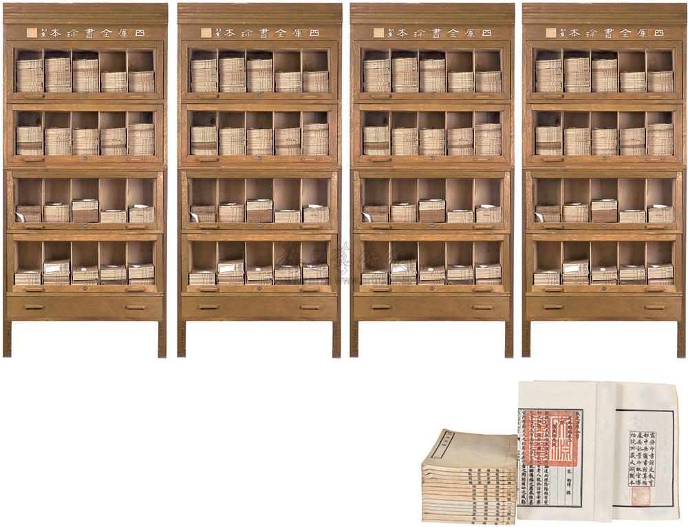 《四库全书》因卷帙浩繁,也未雕版印刷,前后只有七部抄本问世,分藏于南北方的七阁。其中文宗阁、文汇阁所藏毁于太平军之手,文澜阁所藏也于太平军攻打杭州时损失大半,文渊阁所藏于1948年运往台湾,文津阁所藏由北京国家图书馆收藏。外国人对《四库全书》破坏主要涉及两部,一部是文源阁所藏,1860年,被侵入北京的英法联军焚毁掉,一部是文溯阁所藏,“九·一八”事变后被日本人强行掠走,幸运的是日本战败后此书由苏联接收并返送我国。